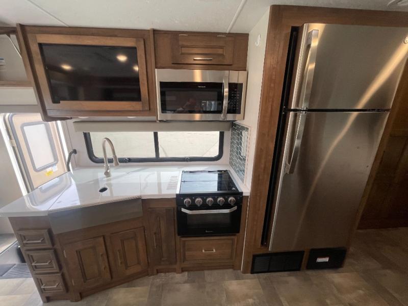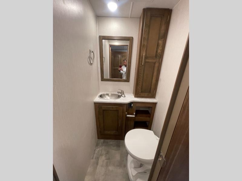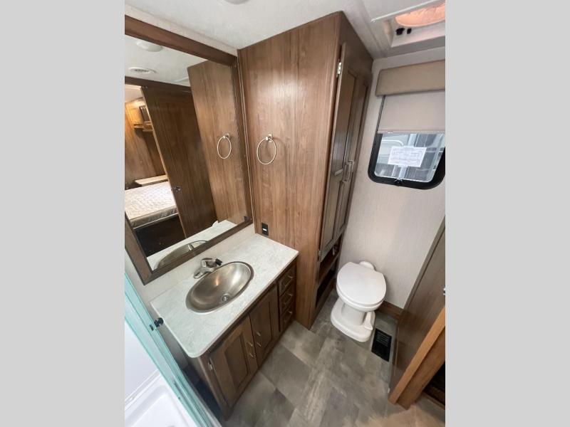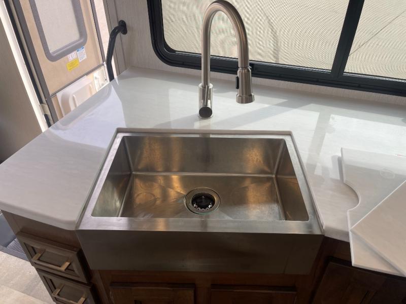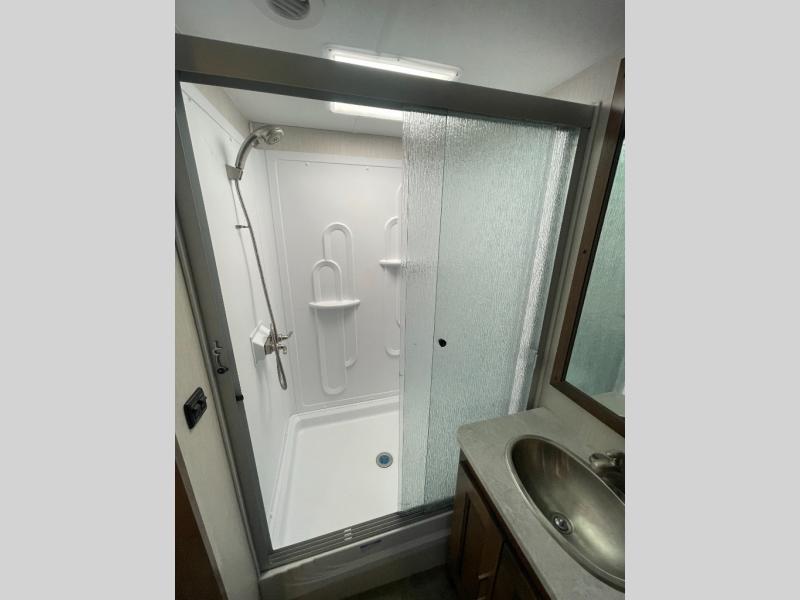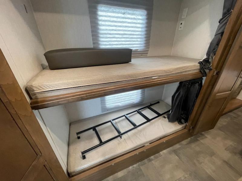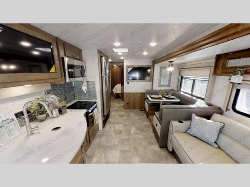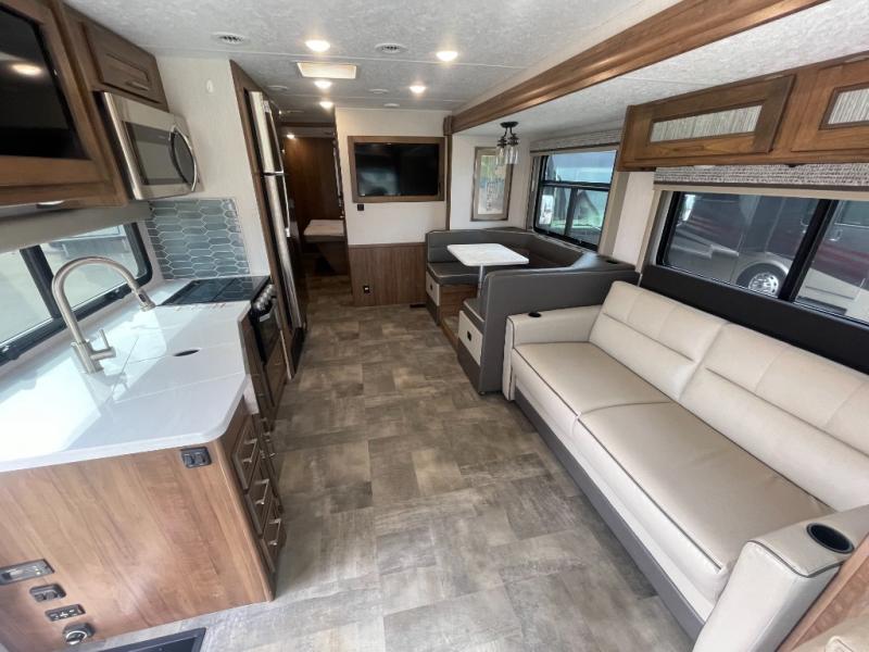 A bath and a half is just one of the many features you will love about this 35BH motorhome! You can bring along the whole gang and enjoy all of the seating and sleeping options provided by the bunk beds that are conveniently across from the half bath and just outside of the walk-through bedroom. Plus, there is also a drop-down overhead bunk and a 68" sofa bed. You can even transform the U-shaped dinette when you aren't enjoying your meals at it or playing some card games. There are two LED TVs that come standard inside this motorhome, but if you wish for more entertainment, then you can add the optional galley 32" LED TV or even relax outside while watching a game on the exterior LED TV!