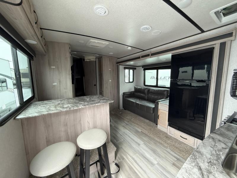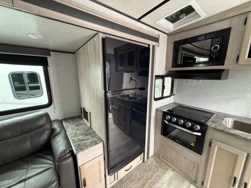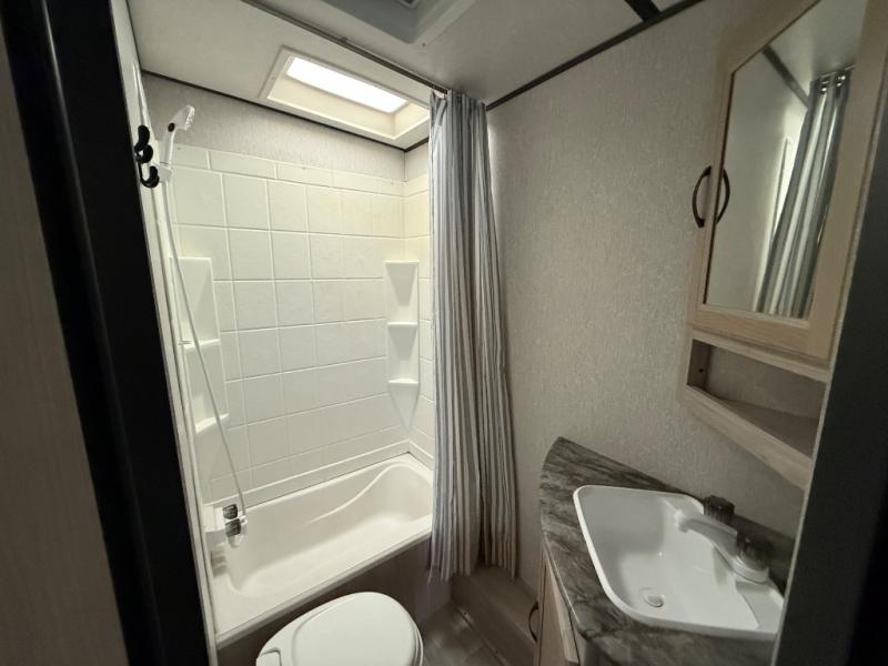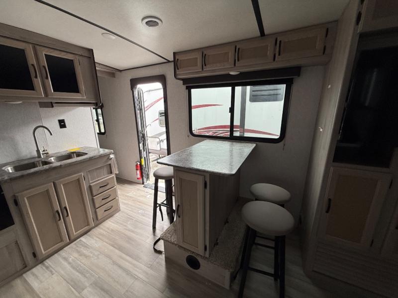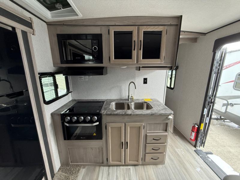 Your family will never stop telling you how much they love this Northern Spirit Ultra Lite travel trailer! From the double-size bunks with a lower flip-up bunk and the private bedroom with Max Bed Storage to the bar top with storage and the laundry center, you will thoroughly enjoy the great convenience that this trailer provides. The entertainment center with LED TV sits across from the sofa with end table, and since the sofa rests upon the single slide, you will have enough space for people to pass through as you watch your favorite movie.