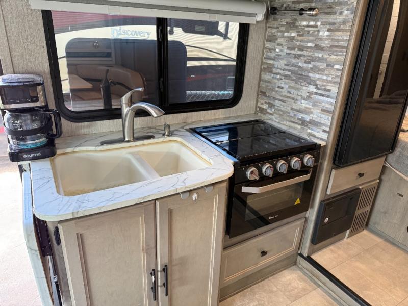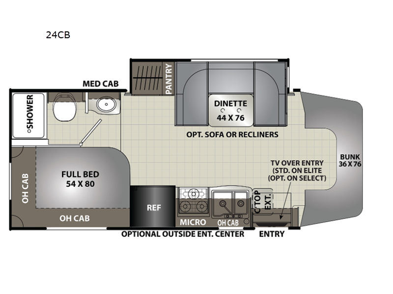 You will find comfort, convenience, and affordability in this Prism Select Class C diesel motorhome! The kitchen is stocked with a three-burner range, double sink, refrigerator, countertop extension, and a pantry so that you can eat your favorite meals no matter where you are. You can also enjoy those meals at the U-shaped dinette. Sleeping space is easy to find in this coach because there is a full-size bed and a bunk above the cab, and the dinette can also provide sleeping space once it's folded into position. This coach gives you the opportunity to customize as you wish because it comes with a couple of options, like the optional recliners or sofa in place of the dinette and the optional outside entertainment center.