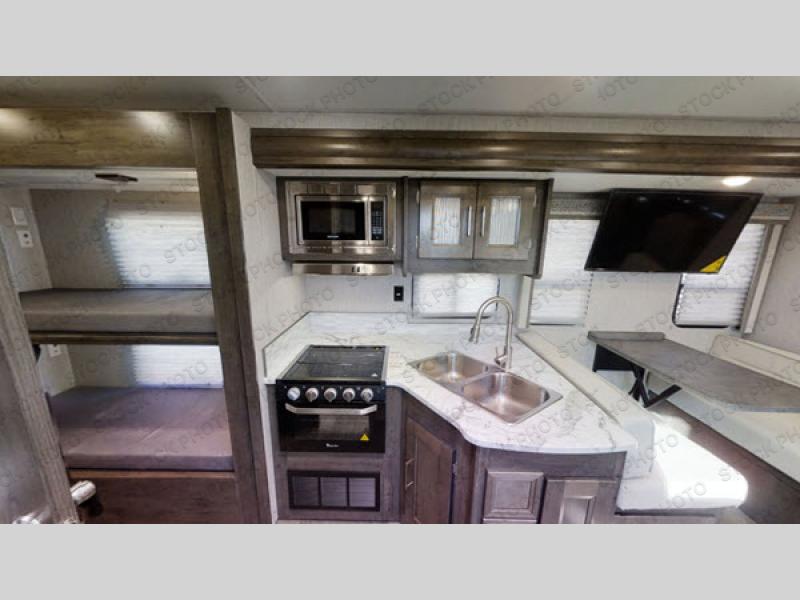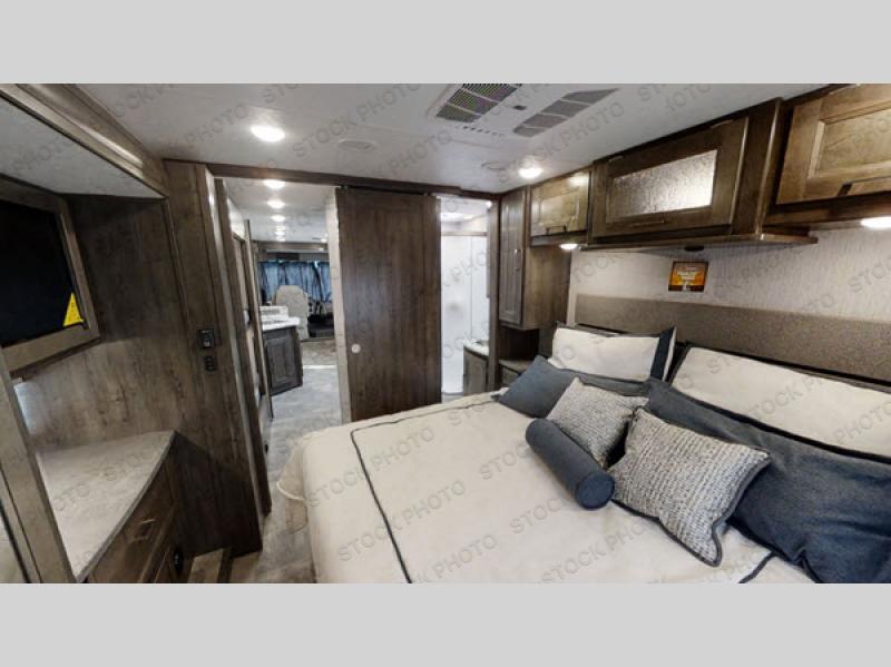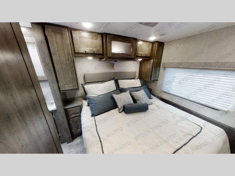 This Coachmen Pursuit motorhome is perfect for a family or group of friends up to eight individuals. You have a RV king bed in the rear private bedroom which also has access to the dual entry bath, a 68" sofa with storage, a booth dinette, and a drop down bunk above the cab. There are even bunk beds with a wardrobe the kids are sure to love! There are not only places for your family to sleep, but there are also plenty of places for storing their things while you are away on vacation. Plus, there is entertainment for everyone between the LED TV in the living room, the 32" LED TV in the bedroom, and the exterior LED TV!