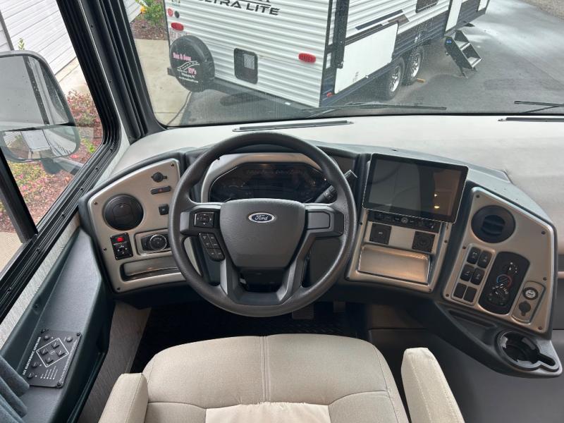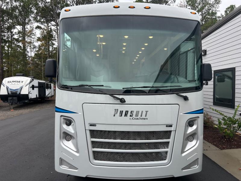 Set out to see the world without leaving tranquility behind in any one of these Coachmen RV Pursuit Class A gas motorhomes! Every detail has been thought of to give you an ultimate experience from the passenger dash with a computer workstation so you can get some work done while on the road to the optimized exterior storage space that makes hauling your gear easier without taking up interior space. The high gloss dove grey sidewalls come with Azdel™ superlight composite to keep your unit from rotting away. New to 2021 is a steering wheel with a better aerodynamic design, a digital dash for clearer viewing, a 10" touchscreen that is easier to manage, and two new wood and décor options available for you to customize to fit your taste. Come find the perfect model for you today!