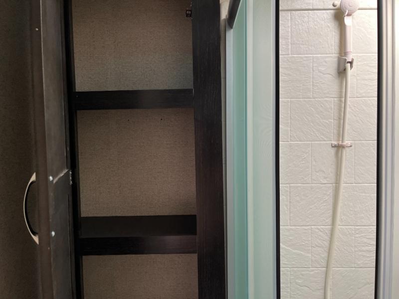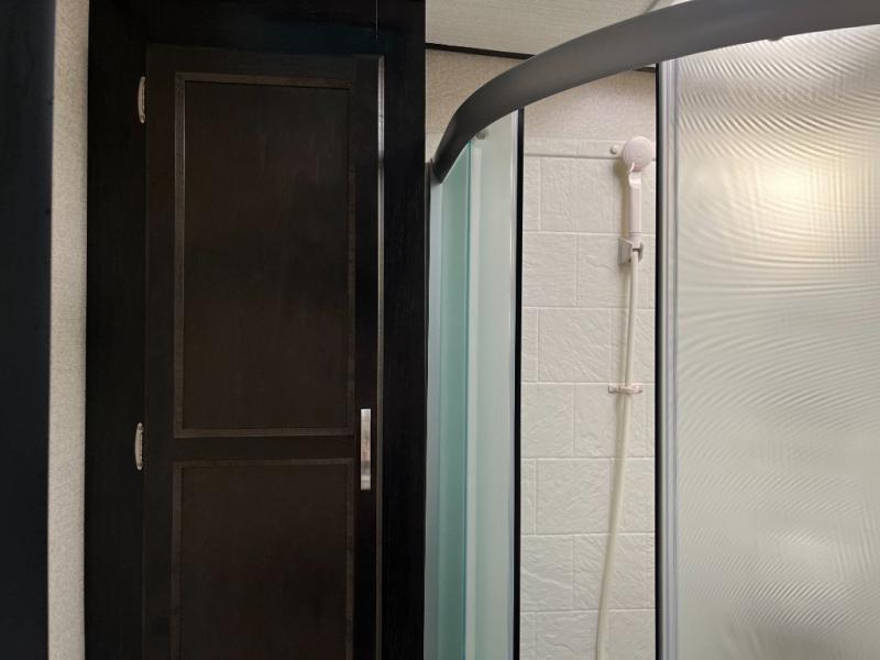 Indoor shower, toilet, and vanity make daily routines easier wherever you camp.