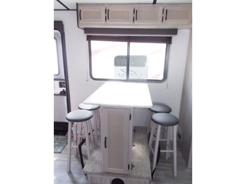 This family-friendly Spirit Ultra Lite travel trailer will make the kids happy thanks to the double-size bunk beds and two kids' convenience centers to call their own! You will have your own privacy in the front bedroom that has a walk-around queen bed with storage underneath as well as on the sides. Once you reach your destination, you can open up the 20' power awning and make lunch on the outside camp kitchen. Inside, you will love to play a game at the bar that includes four bar stools and convenient storage underneath, and you can take a load off on the sofa with end table for your drinks.