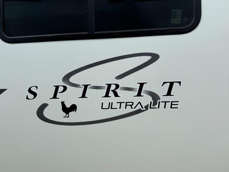 This family-friendly Spirit Ultra Lite travel trailer will make the kids happy thanks to the double-size bunk beds and two kids' convenience centers to call their own! You will have your own privacy in the front bedroom that has a walk-around queen bed with storage underneath as well as on the sides. Once you reach your destination, you can open up the 20' power awning and make lunch on the outside camp kitchen. Inside, you will love to play a game at the bar that includes four bar stools and convenient storage underneath, and you can take a load off on the sofa with end table for your drinks.
