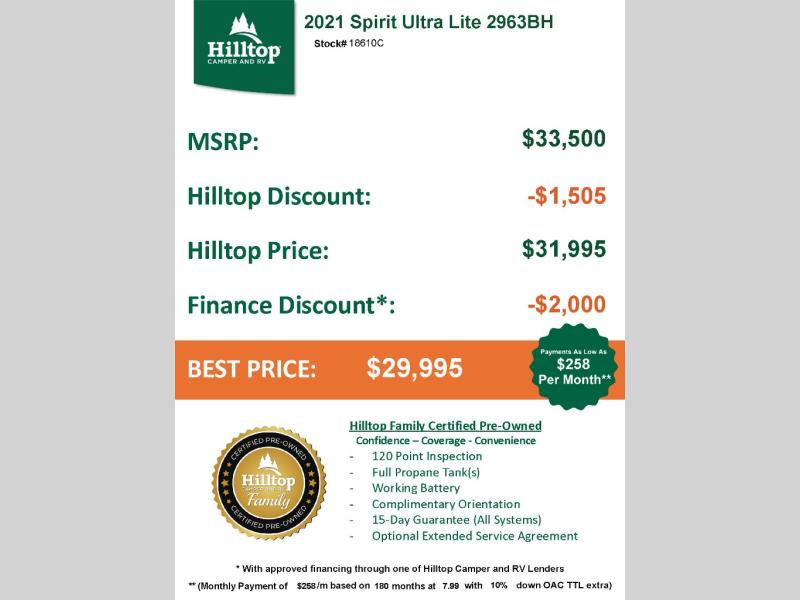 Used 2021 Coachmen RV Spirit Ultra Lite 2963BH Travel Trailer