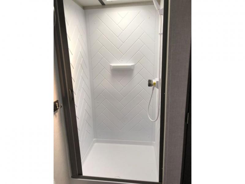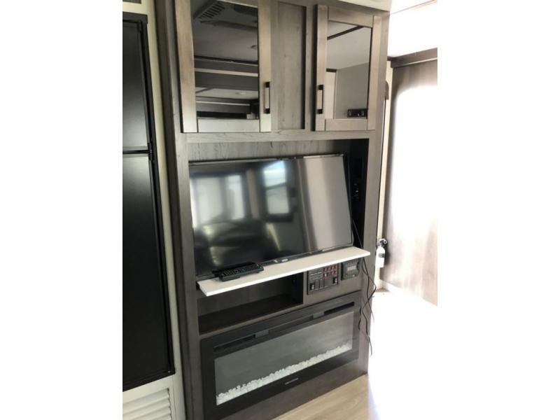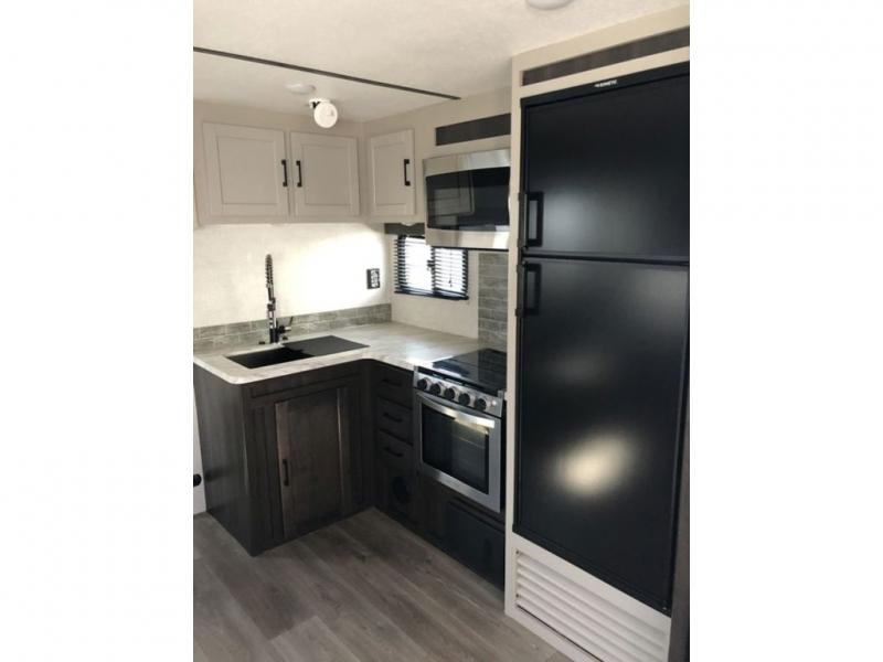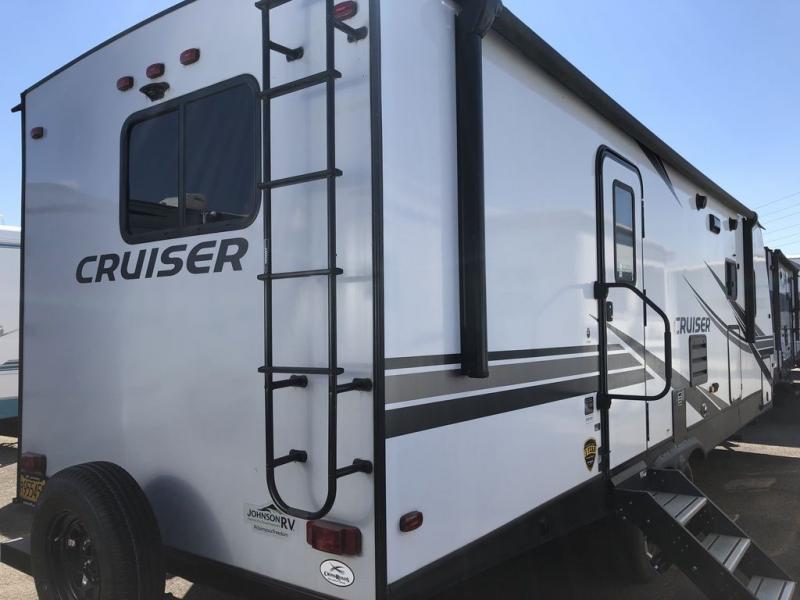 The CrossRoads RV Cruiser Aire fifth wheels and travel trailers have been made with your needs in mind. You will find many conveniences to make camping easier than ever, including Secure Stance entry steps, a Keyed-A-like lock system, a friction hinge entry door with a window, and more! The one piece seamless Super Flex roof includes a rear roof ladder so you can easily clean the top of your unit after a weekend in the woods. You can easily bring along all of your necessities with convenient storages spaces, like the full truck under-bed storage, the spacious bedroom closets, and the exterior heated pass-through storage. The high-rise faucet in the kitchen will make clean-up a breeze, and the hardwood cabinet doors will give that extra touch-of-home!