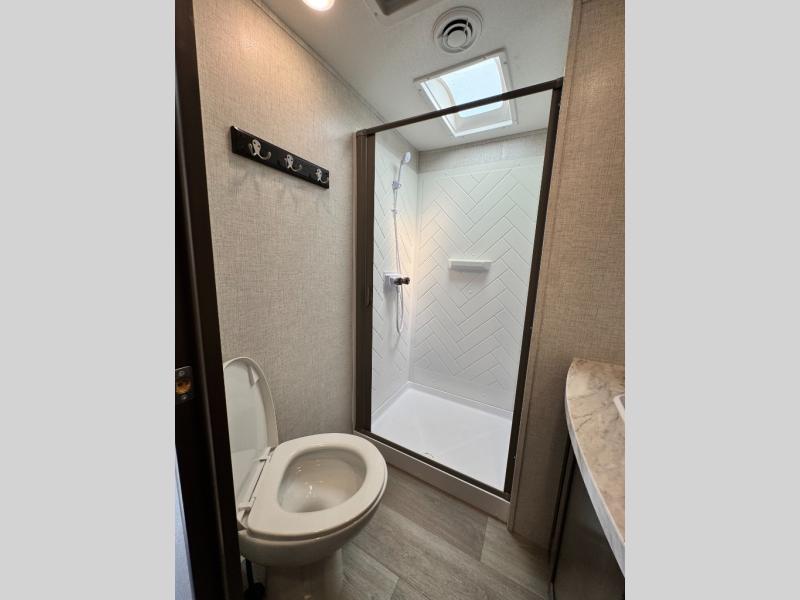Generous fresh and waste water tank capacities, allowing longer trips without constant hookups.