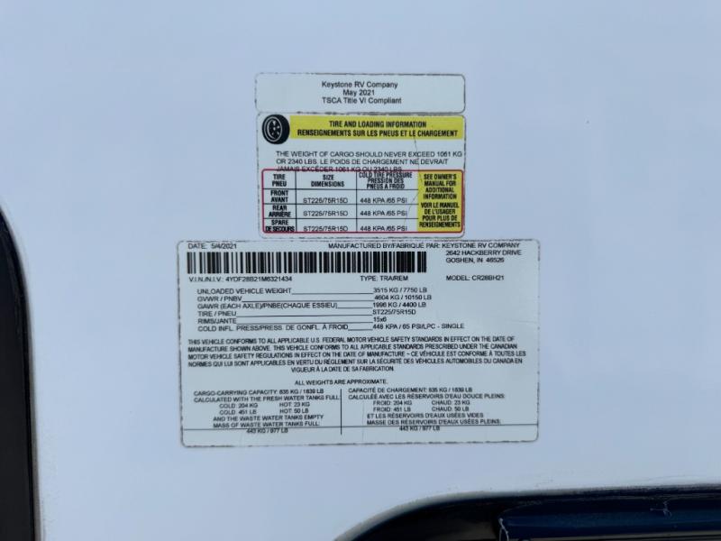 Used 2021 CrossRoads RV Cruiser Aire CR28BH Fifth Wheel