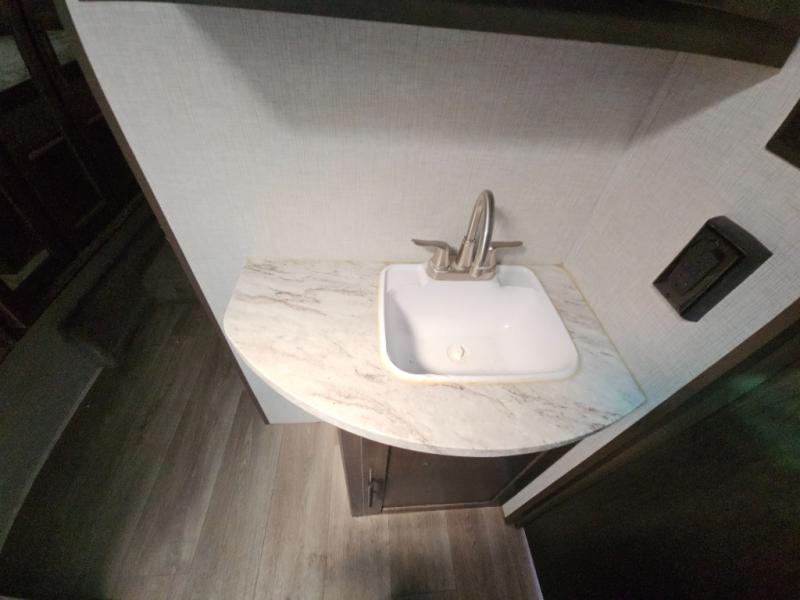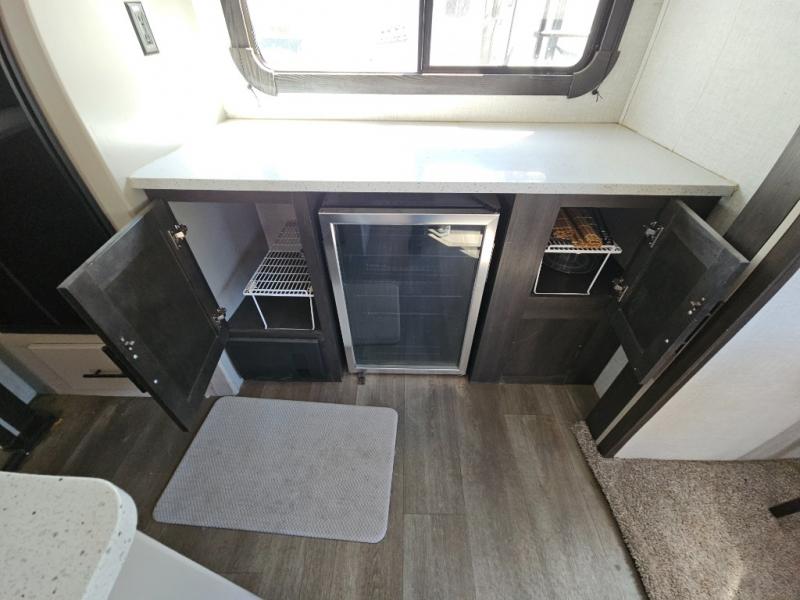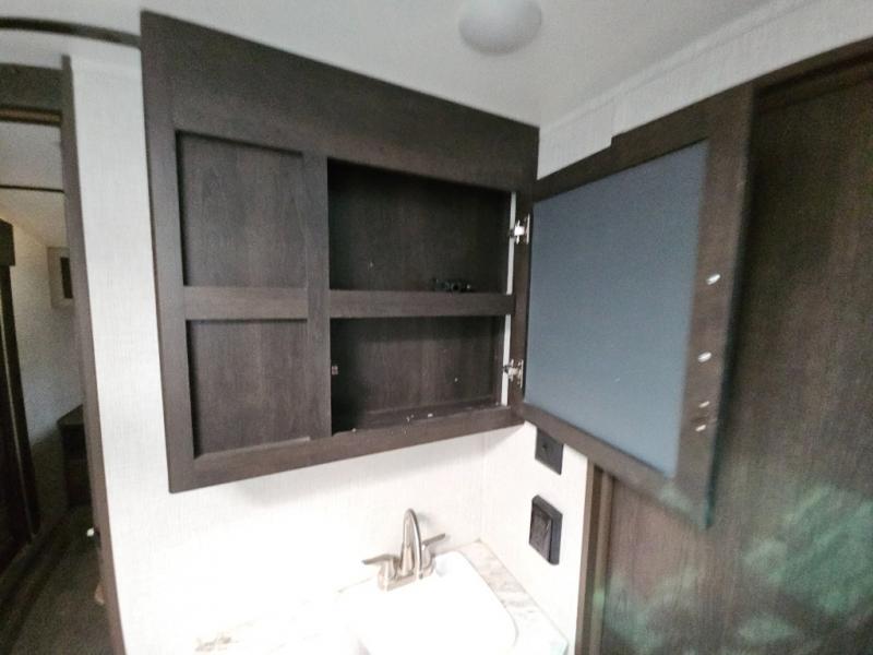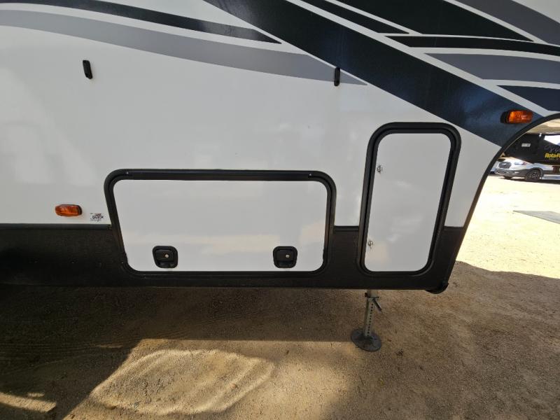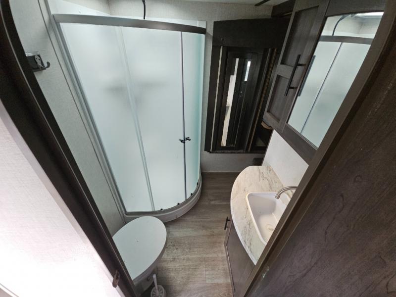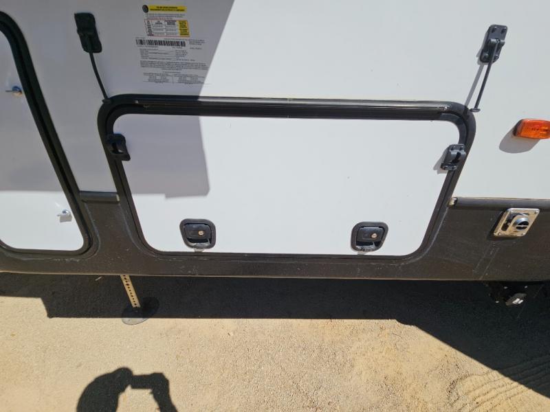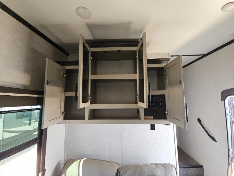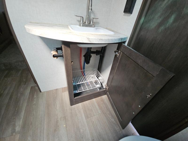 The CrossRoads RV Cruiser Aire fifth wheels and travel trailers have been made with your needs in mind. You will find many conveniences to make camping easier than ever, including Secure Stance entry steps, a Keyed-A-like lock system, a friction hinge entry door with a window, and more! The one piece seamless Super Flex roof includes a rear roof ladder so you can easily clean the top of your unit after a weekend in the woods. You can easily bring along all of your necessities with convenient storages spaces, like the full truck under-bed storage, the spacious bedroom closets, and the exterior heated pass-through storage. The high-rise faucet in the kitchen will make clean-up a breeze, and the hardwood cabinet doors will give that extra touch-of-home!