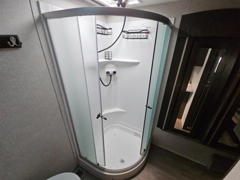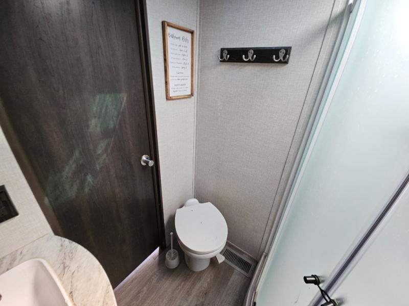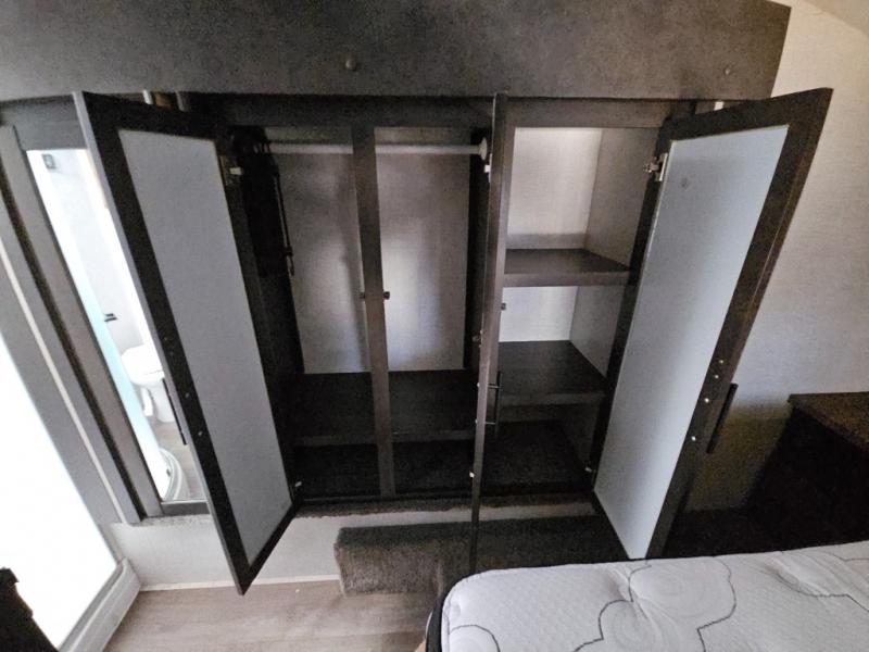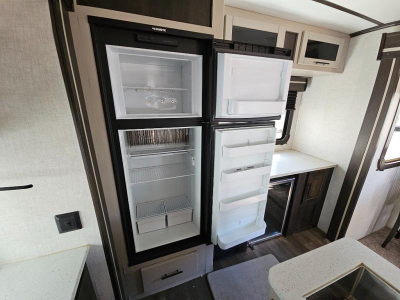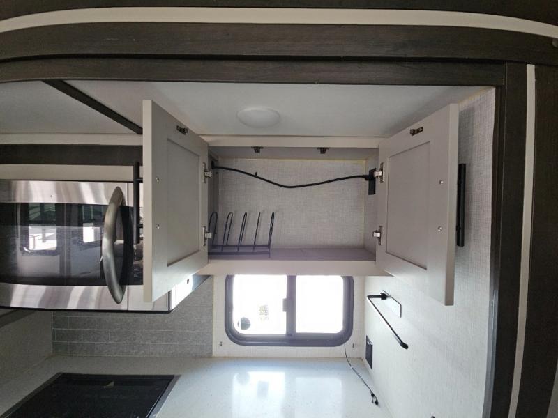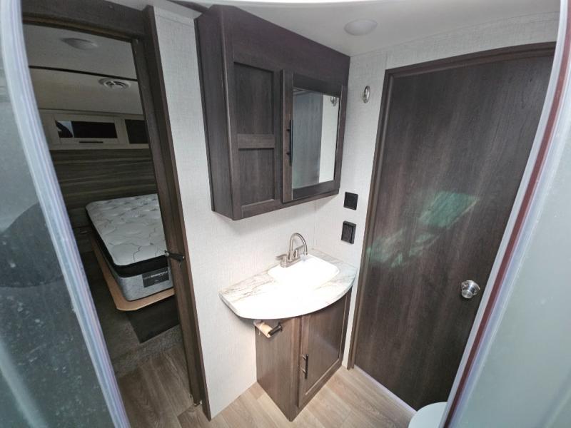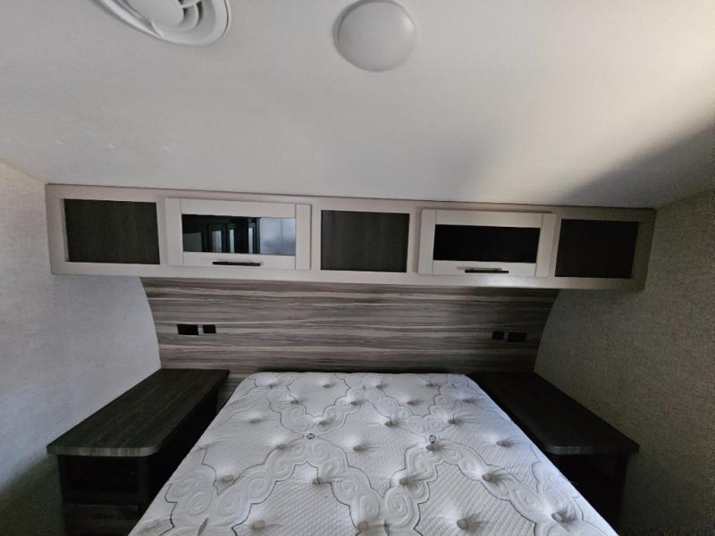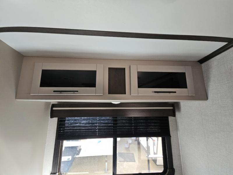 The CrossRoads RV Cruiser Aire fifth wheels and travel trailers have been made with your needs in mind. You will find many conveniences to make camping easier than ever, including Secure Stance entry steps, a Keyed-A-like lock system, a friction hinge entry door with a window, and more! The one piece seamless Super Flex roof includes a rear roof ladder so you can easily clean the top of your unit after a weekend in the woods. You can easily bring along all of your necessities with convenient storages spaces, like the full truck under-bed storage, the spacious bedroom closets, and the exterior heated pass-through storage. The high-rise faucet in the kitchen will make clean-up a breeze, and the hardwood cabinet doors will give that extra touch-of-home!