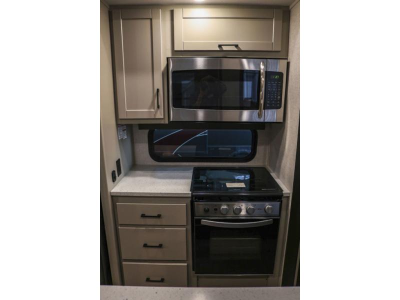 You will find conveniences throughout any one of these CrossRoads RV Cruiser fifth wheels! Starting from the outside with an easy winterization bypass, motion sensor lights, aluminum wheels with steel reinforced wheel wells, and a walk-on roof with ladder and bike rack. The luxurious interiors have a command panel with easy access switches, slide windows to create cross ventilation, and a CD/DVD player with HDMI to watch your favorite movies at night while relaxing on the Thomas Payne furniture. The painted aerodynamic fiberglass cap will turn heads at the campsite, and the secure stance steps will help you safely enter the unit while the Keyed-A-Like locks keep everything safe inside!