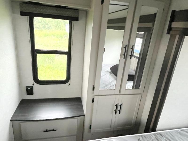 If you want a home away from home then look no further than one of these CrossRoads RV Hampton destination trailers! They are designed to feel like home with 8-foot interior ceilings, rich stainless steel residential style appliances, hardwood raised panel cabinetry, and an abundance of storage. A one piece radius roof with 3/8" decking covers them and an enclosed underbelly protects their vitals. A floor ducted 35,000 BTU furnace will keep you warm on those cooler nights and the floor insulation with radiant tech foil will keep the heat inside. With the standard Convenience package, you will get handy features like two 15,000 BTU A/C's to keep you cool on a hot summer day, a TV antenna for your entertainment, and a quilted bedspread for another at home touch. Come find the right one for you today!