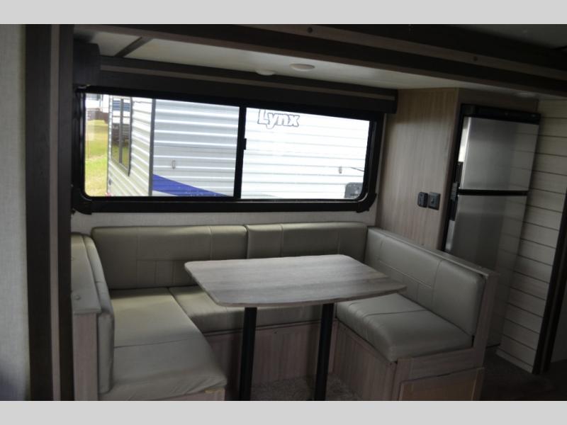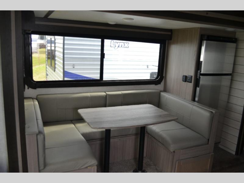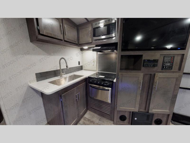 The lightweight Sunset Trail travel trailers by CrossRoads RV include EZ lube axles, laminated sidewalls, secure stance entry steps, plus an exterior convenience center to make each camping trip enjoyable. The gas oven, stainless steel microwave, and refrigerator allow you to cook and store food during your trip to the lake, and the stainless steel farmhouse sink will make clean-up a breeze. These models feature solid wood drawer construction and LED lights for an open and bright living space. You can choose to add many convenient options, such as the optional 50 amp electrical service, a second 13,500 BTU A/C, and a free-standing table and chairs in place of the booth dinette!