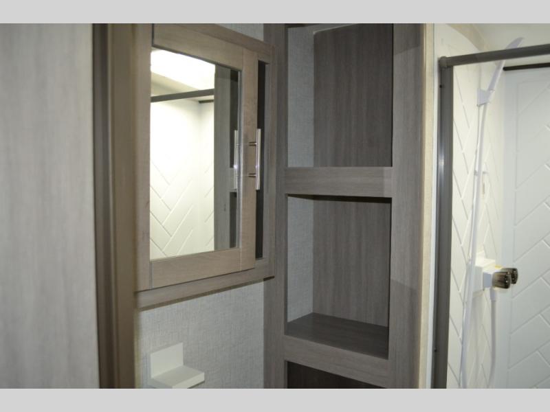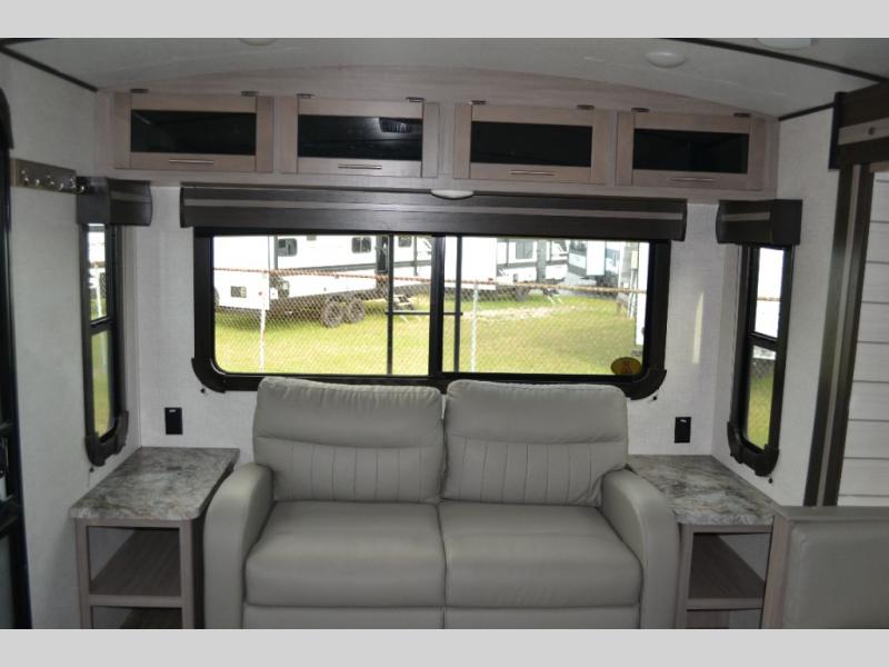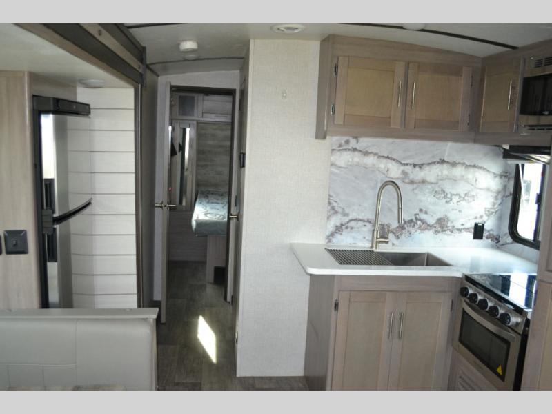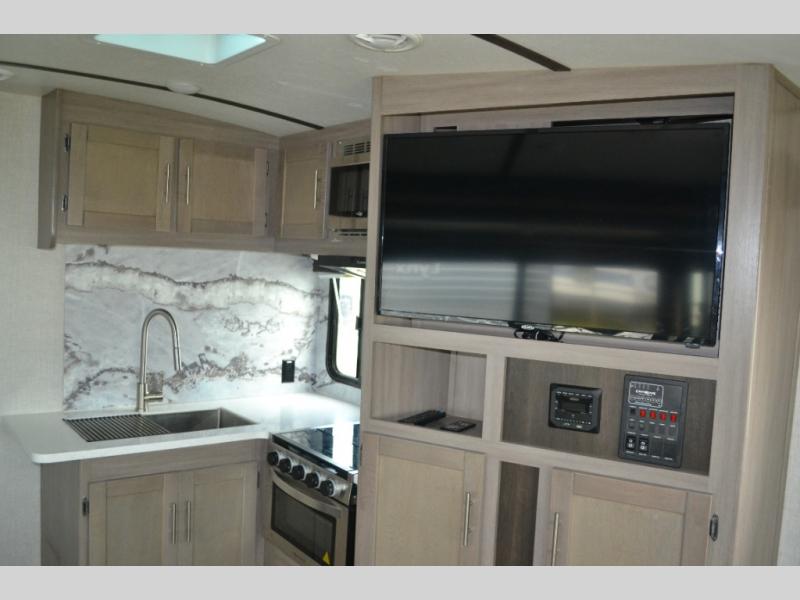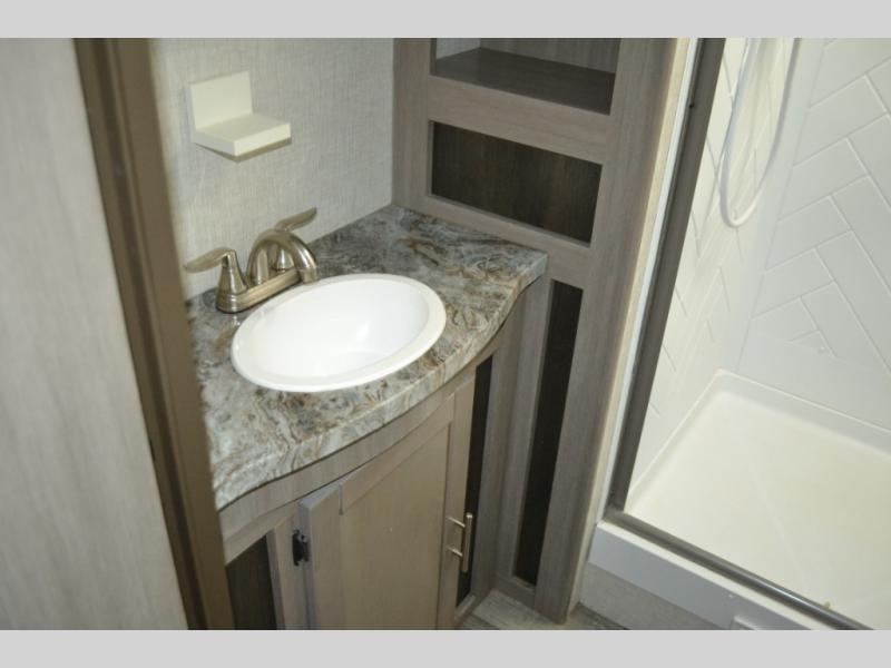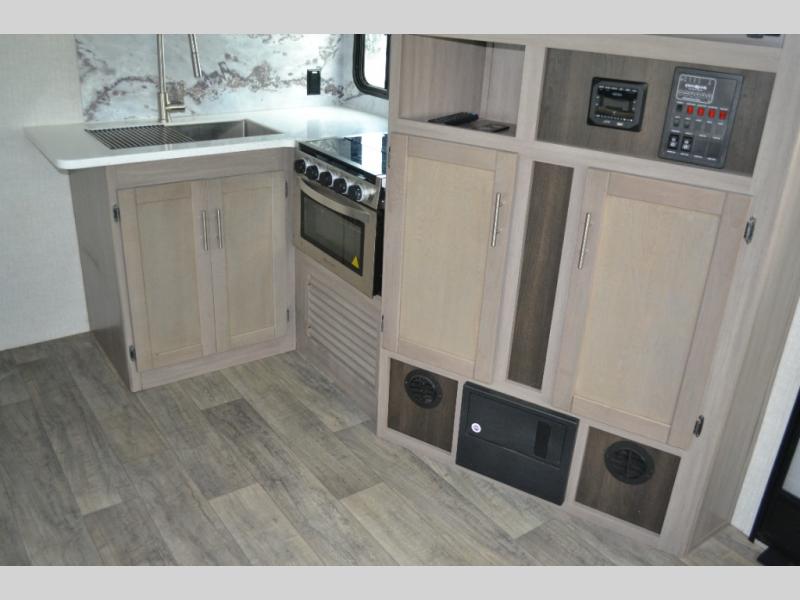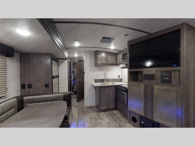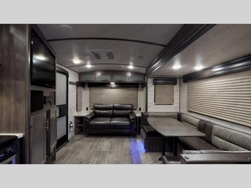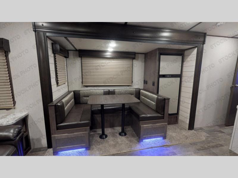 Whether you're relaxing in the rear living area, playing a game of cards around the U-shaped dinette, or resting on the king bed, you will love your time in this spacious travel trailer. The centrally located full bath allows you to start your day feeling fresh each morning, and the kitchen includes all the appliances needed to create home-cooked meals. This model also includes an exterior docking station, plus a power awning with LED lights that will create an inviting outdoor living space!