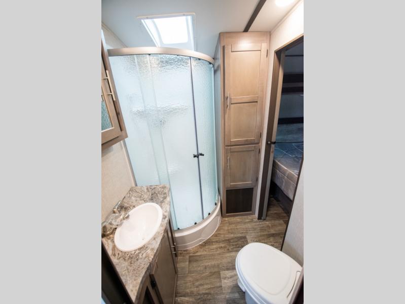 The lightweight Sunset Trail travel trailers by CrossRoads RV include EZ lube axles, laminated sidewalls, secure stance entry steps, plus an exterior convenience center to make each camping trip enjoyable. The gas oven, stainless steel microwave, and refrigerator allow you to cook and store food during your trip to the lake, and the stainless steel farmhouse sink will make clean-up a breeze. These models feature solid wood drawer construction and LED lights for an open and bright living space. You can choose to add many convenient options, such as the optional 50 amp electrical service, a second 13,500 BTU A/C, and a free-standing table and chairs in place of the booth dinette!
