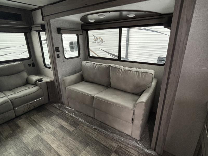 With each Volante travel trailer or fifth wheel by CrossRoads RV you will enjoy years of use and all-seasons camping with the fully enclosed and forced air heated underbelly. You'll appreciate USB ports for your tablet or phone, and each model features WiFi prep if you need to get some work done while away from home. These models include an XL 50/50 stainless sink in the kitchen, along with steel ball bearing drawer guides, and a 10.7 Cu. Ft. 12V refrigerator for all your perishables. The flush floor slide out in the living room with large dinette windows will provide a great view of the great outdoors, and you can jam to some tunes with the AM/FM Bluetooth sound bar. Take a look at the Volante today to find your favorite layout!