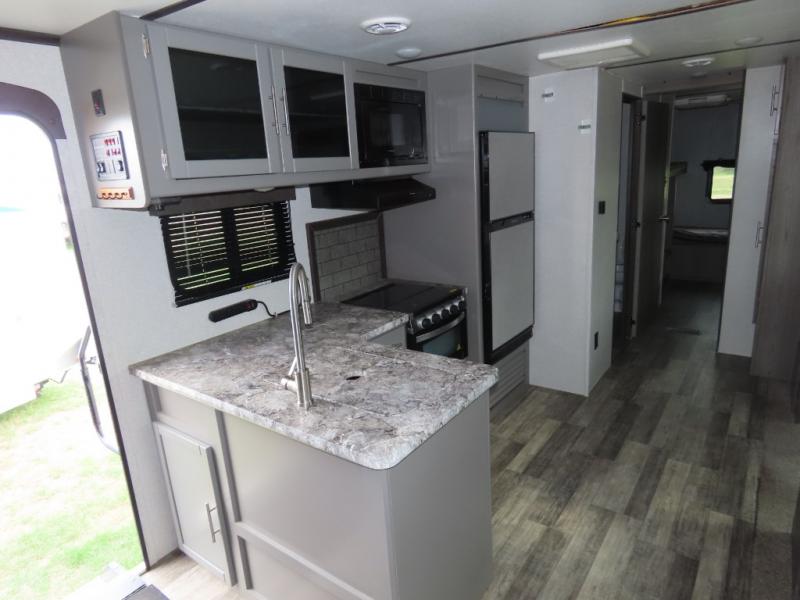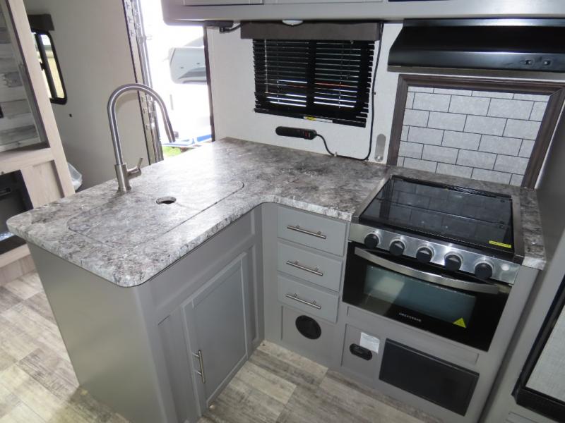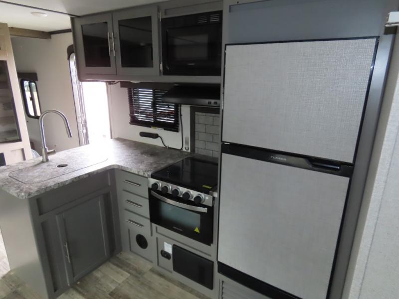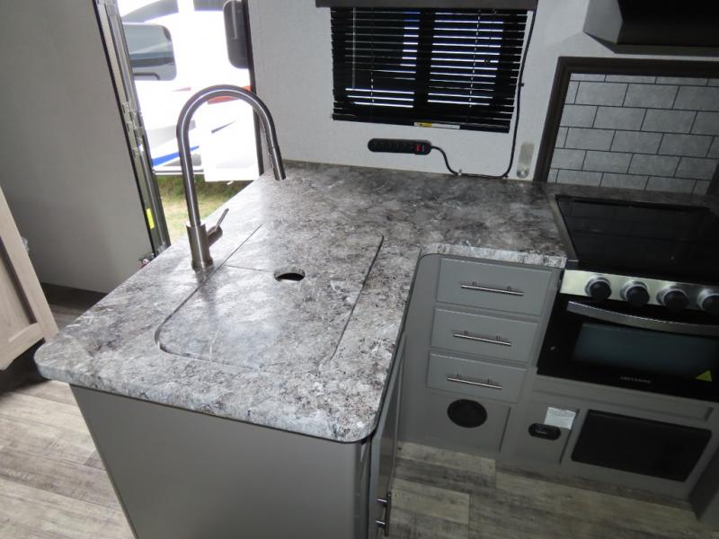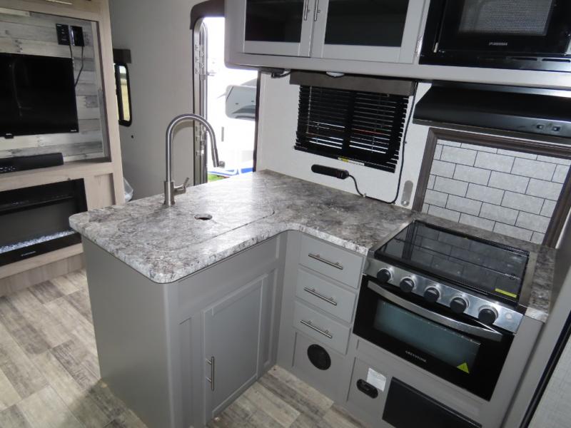 With each Volante travel trailer or fifth wheel by CrossRoads RV you will enjoy years of use and all-seasons camping with the fully enclosed and forced air heated underbelly. You'll appreciate USB ports for your tablet or phone, and each model features WiFi prep if you need to get some work done while away from home. These models include an XL 50/50 stainless sink in the kitchen, along with steel ball bearing drawer guides, and a 10.7 Cu. Ft. 12V refrigerator for all your perishables. The flush floor slide out in the living room with large dinette windows will provide a great view of the great outdoors, and you can jam to some tunes with the AM/FM Bluetooth sound bar. Take a look at the Volante today to find your favorite layout!