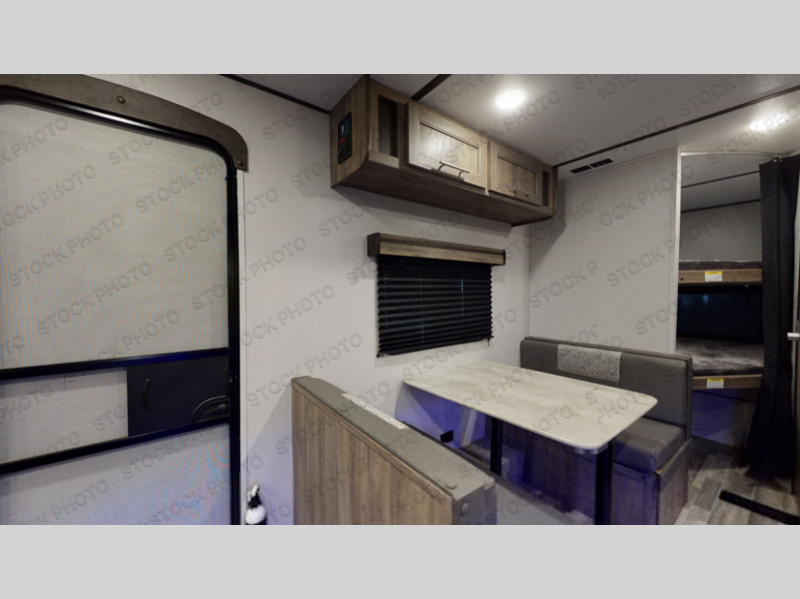 Are you ready for the best camping experience you've had yet? This Zinger Lite travel trailer sleeps nine people, ensuring family memories that will last for years! You'll enjoy a front bedroom with an RV queen bed and shirt closets on either side for your clothes. The kids or your guests are going to love the bunk beds they can climb into after a day of swimming or hiking. Spend time with loved ones as you visit on the sofa or play a game on the 38" booth dinette. This travel trailer has a rear corner bath providing extra privacy everyone will enjoy.