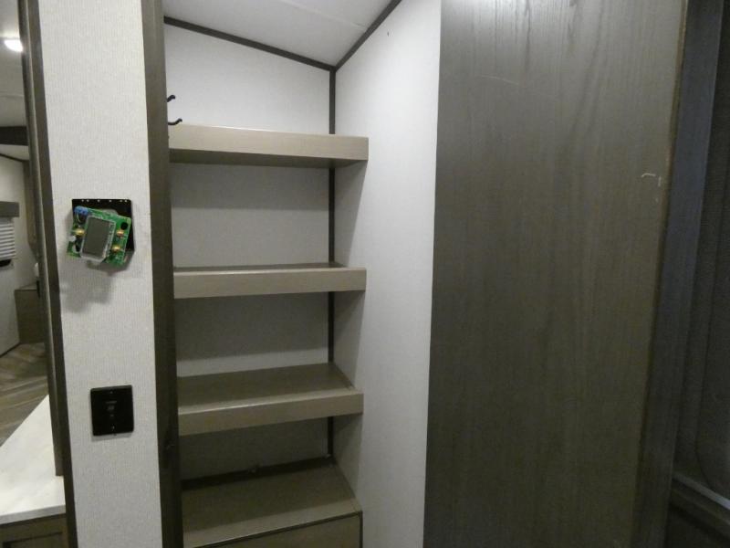 This Shadow Cruiser travel trailer will truly be your home away from home because of its ability to bring the entire family with you. With enough space to sleep nine people comfortably, this trailer makes it possible for everyone to join in on the fun. The single slide gives this trailer extra space to accommodate the walk-in pantry, and because this pantry is located right next to the entry door of this unit, you will conveniently be able to access all of your spices and canned goods while you are cooking at the outdoor kitchen.