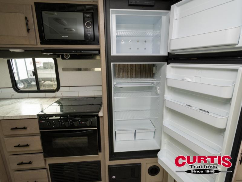 This Shadow Cruiser travel trailer will truly be your home away from home because of its ability to bring the entire family with you. With enough space to sleep nine people comfortably, this trailer makes it possible for everyone to join in on the fun. The single slide gives this trailer extra space to accommodate the walk-in pantry, and because this pantry is located right next to the entry door of this unit, you will conveniently be able to access all of your spices and canned goods while you are cooking at the outdoor kitchen.