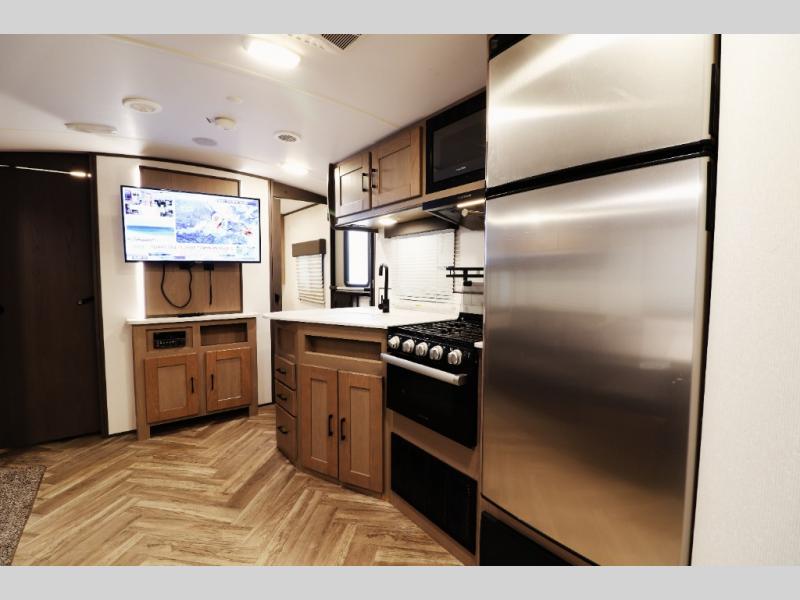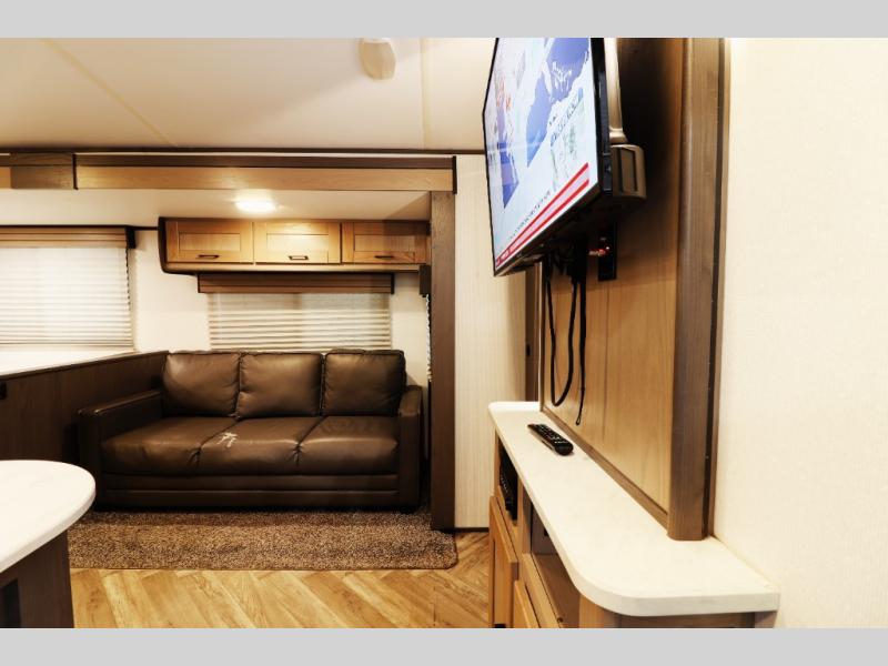 XL pass-through storage (40+ cu ft) with slam-latches & LED lights