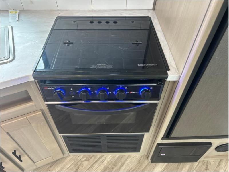 Taking this Shadow Cruiser travel trailer on your next big adventure is a smart choice because this trailer comes equipped with everything you will need for a successful and enjoyable outdoor excursion. With enough space to sleep nine people comfortably, you never have to leave anyone behind, and the front private bedroom gives you a chance to unwind and relax after a long day of exploring. When you wake up in the morning, you will find it easy to fix up a hearty meal to feed your large party because of the three-burner range that has been included in the kitchen, as well as the outdoor kitchen that has been added for extra cooking space.