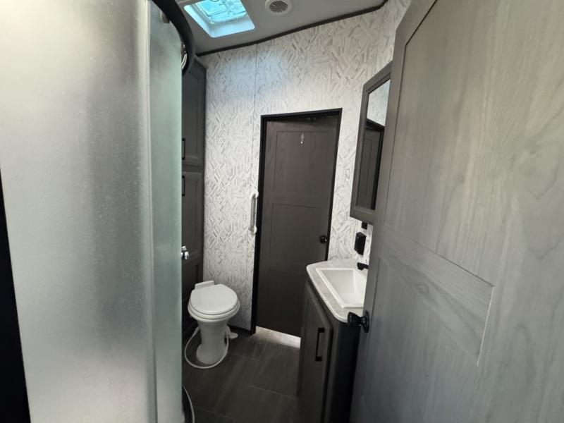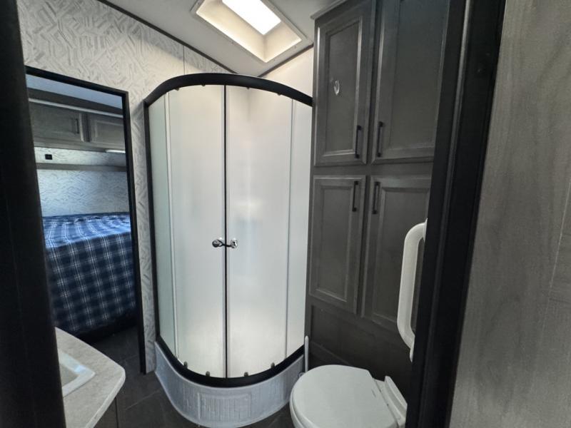 Load up your family, a few off-road toys, and enjoy the weekend of your dreams with this Stryker toy hauler travel trailer by Cruiser RV. This model features plenty of space thanks to the single slide, and the two entry doors give this unit great accessibility. The king sliding bed in the private master suite will be a retreat away from the hustle and bustle in the central living area. There are two opposing sofas and an electric queen-size bunk in the garage area that can be transformed into additional sleeping space for extra family or friends that have joined you.