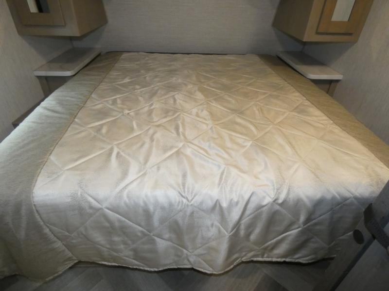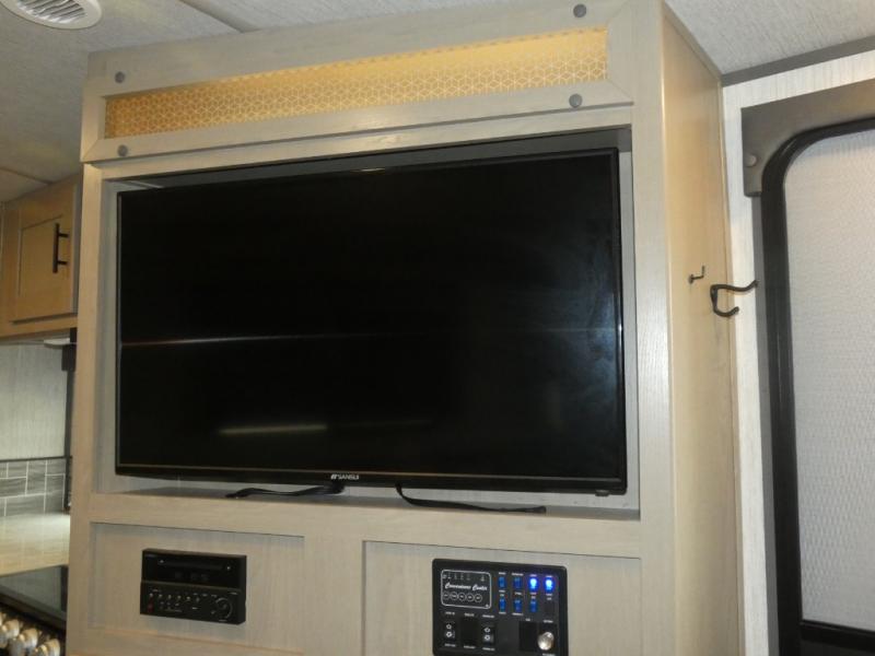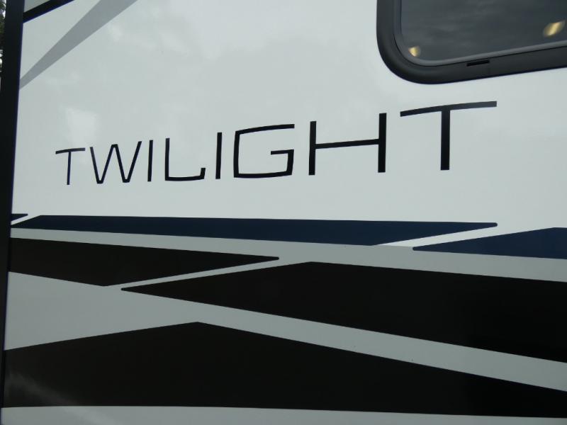 There are many features that will grab your attention on this Twilight Signature travel trailer! The two entry doors will be one of the first that you'll notice, and if you take the bedroom entry, the king-size bed will be the second thing you notice. Another very functional feature is the walk-through bathroom that has entry doors on either side, and the living area is made spacious by a large slide that holds the U-shaped dinette and 10-cubic foot stainless steel refrigerator. Sit back on the tri-fold sofa with a bag of chips while you watch the 40" LED HDTV or chat with the chef.