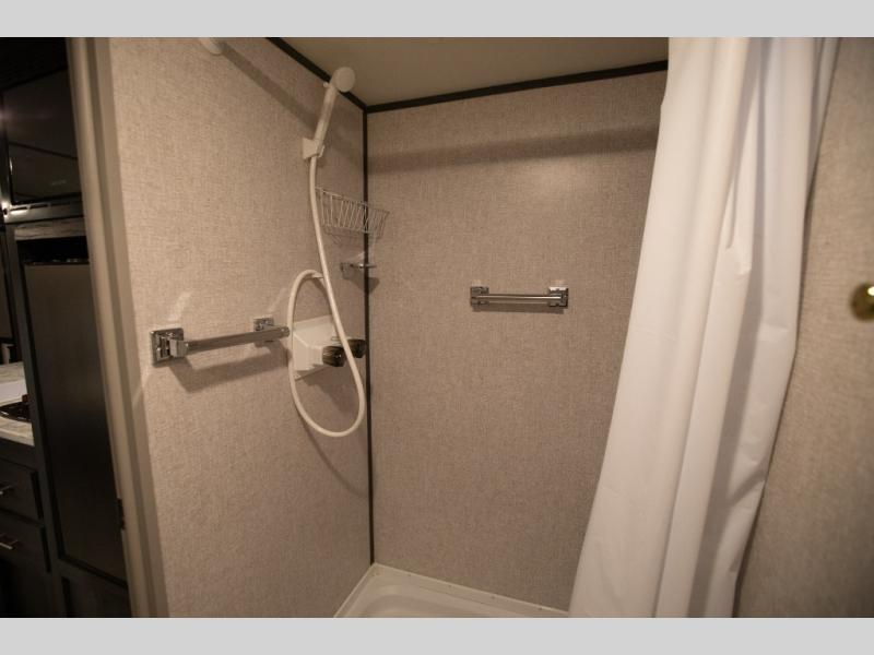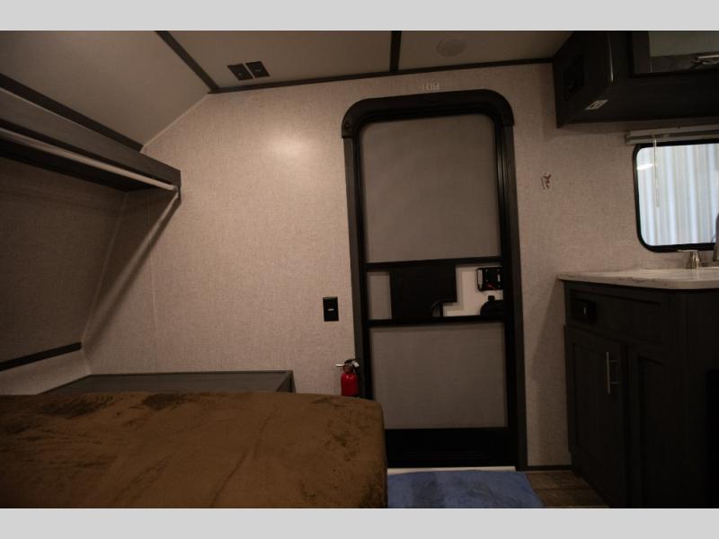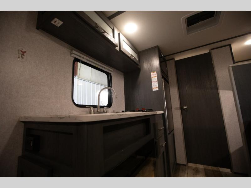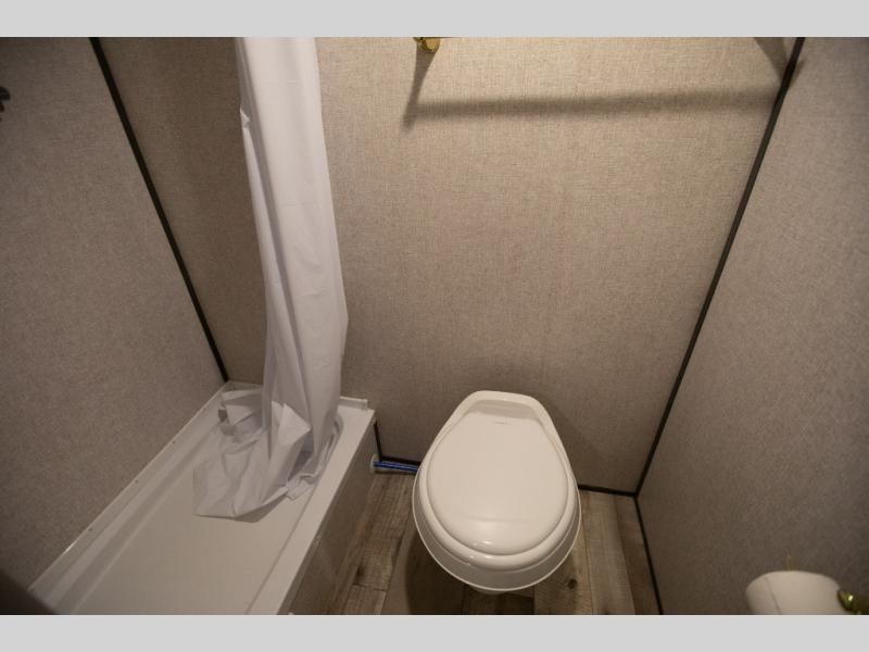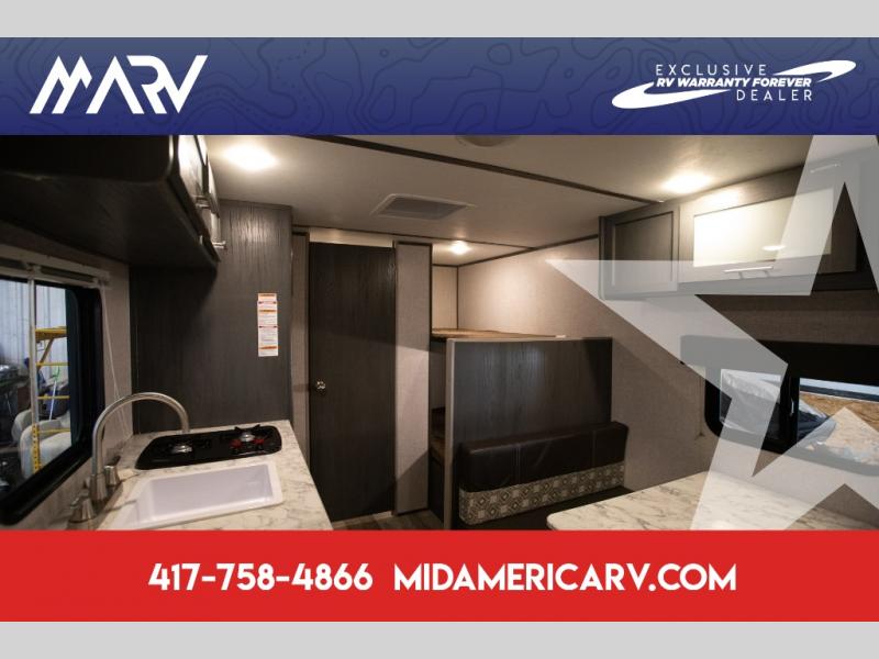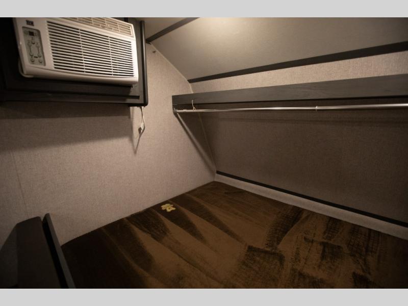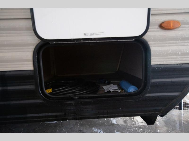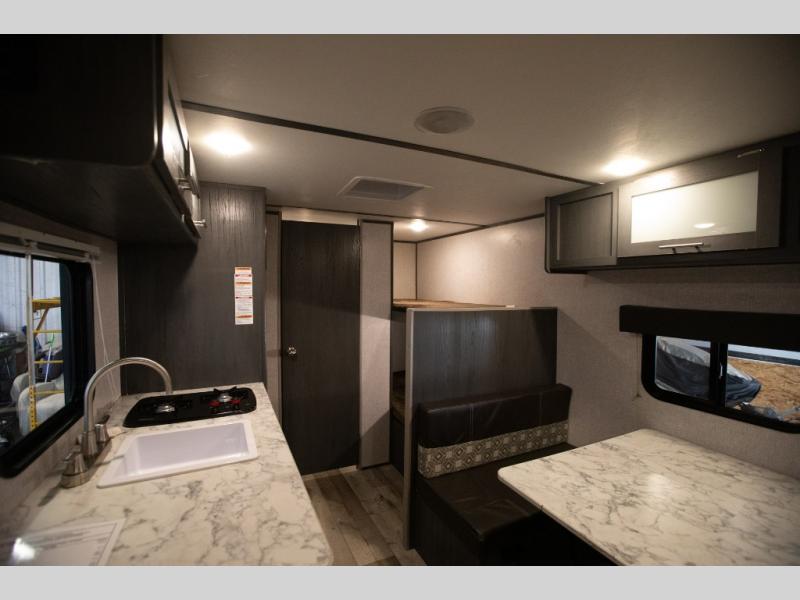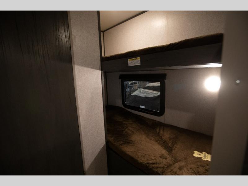 Step inside this travel trailer and see just how fun your next camping trip can be! The kids will love the set of rear corner bunk beds and you will love the front queen-size bed, plus the booth dinette can transform into an extra sleeping space when not in use. You can rinse the sand off in the rear corner bathroom, grab a cold drink from the 3.3 cu. ft. refrigerator, and then head outside and relax underneath the 10' power awning with LED lights!