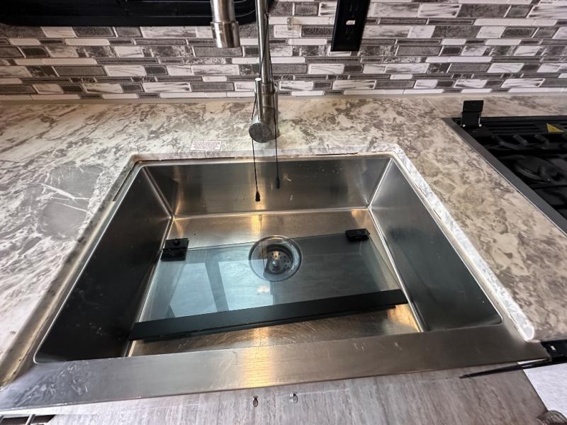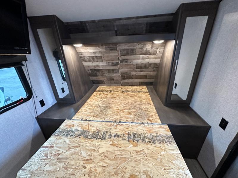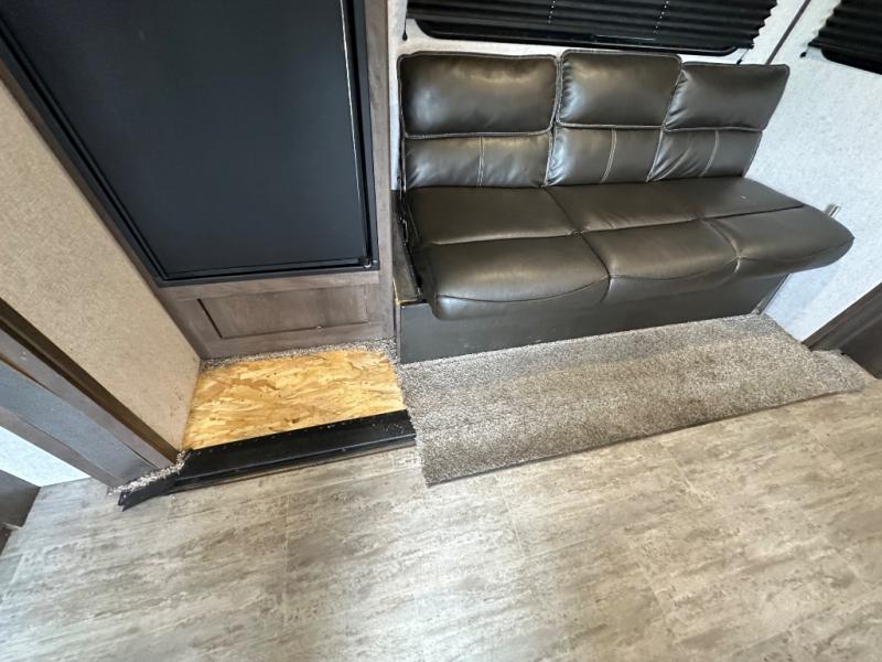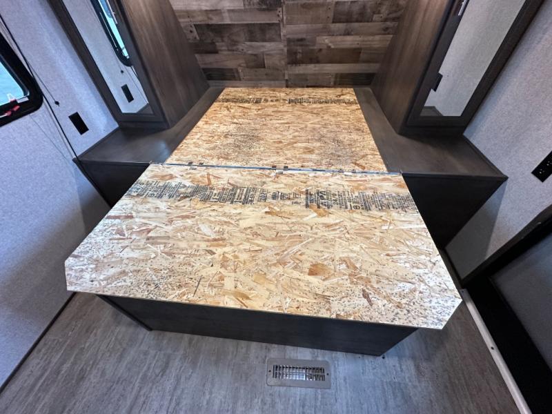 Every one of these Dutchmen RV Aspen Trail toy haulers and travel trailers are built with a durable roof structure including a TPO roof with 3/8" decking, fiberglass insulation, and a Lauan interior panel! The insulated structure consists of a metal exterior panel, a wood frame with R7 thermal insulation, and a Lauan interior panel too so you can keep the warm air in during the cooler months and the cool air in with the superior A/C cooling system during the warmer months. The heated and enclosed underbelly will keep your unit's vitals safe from the elements, and the extended long rain gutters will keep the rain away from it too. With seamless Thermofoil countertops and upgraded Beauflor lino throughout, you will feel right at home while camping in the woods!