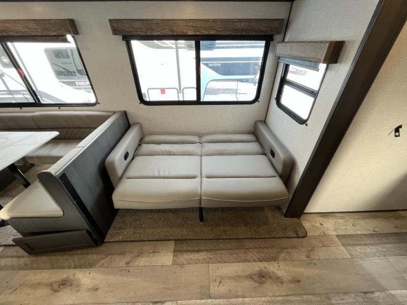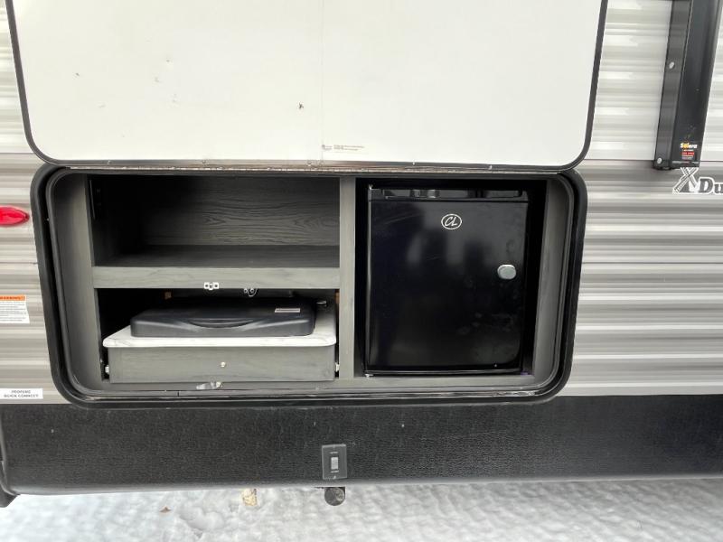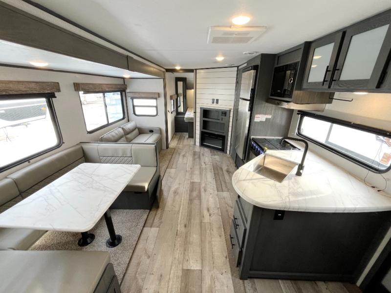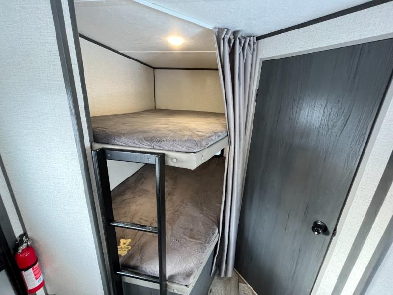 You won't know where to begin with this Aspen Trail travel trailer that has two entry doors! The kids will love sleeping on the rear set of double-size bunks, and you will love having your own private retreat in the front bedroom that has a queen-size Everdream mattress always waiting for you. The U-shaped dinette and sofa rest upon the large slide which provides extra moving space. Grab a snack from the large pantry and head outdoors to see what the chef is grilling up at the outdoor kitchen!