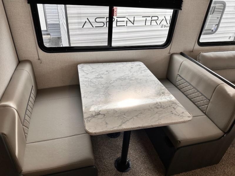Each one of these Dutchmen RV Aspen Trail LE travel trailers will turn heads at the campgrounds! They are built with a durable roof structure consisting of a TPO roof, 3/8" decking, fiberglass insulation, and Lauan interior panel. The superior A/C cooling creates an even cooling throughout with insulated ducting. You will get more bang for your buck with more standard features for less money. The Aspen Trail LE package comes with a 120V exterior outlet which will come in very handy, mini blinds throughout for added privacy, and a high output furnace with auto ignition to keep you warm on a cool night. There is a perfect model just waiting for you to choose it!