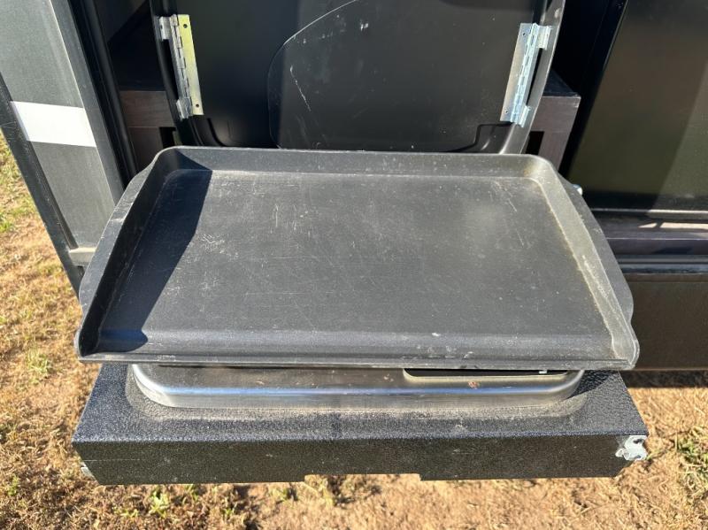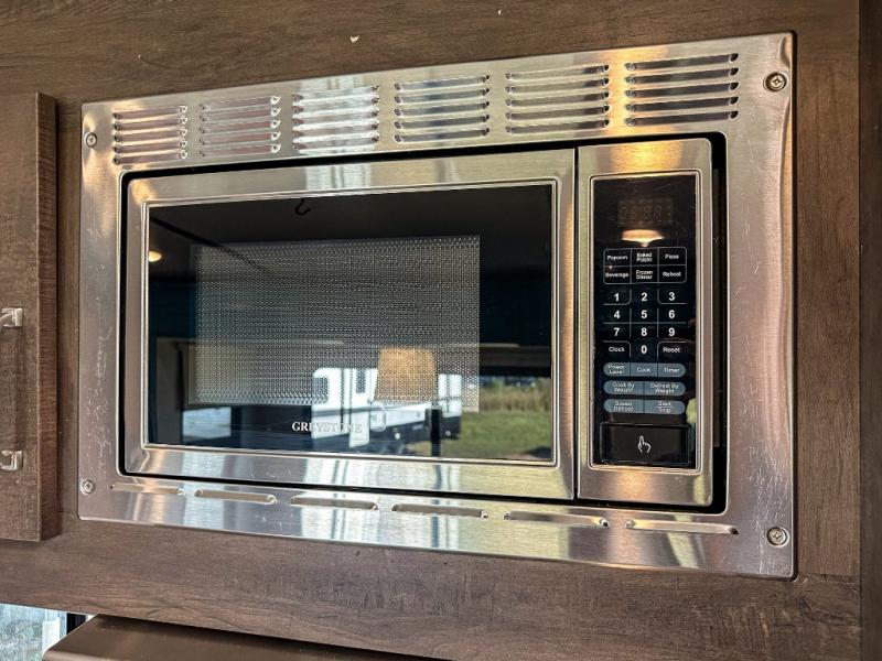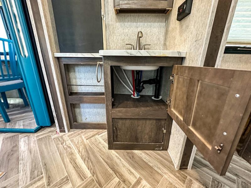 Enjoy spending time with your family in this Astoria travel trailer! With its king-size bed up front, its set of double-size bunks in the back, and its U-shaped dinette and tri-fold sofa in the main living area, your whole family will be able to tag along with you on your journeys. The walk-through bath is convenient because it has entry doors on either side, and with this trailer, you have two places where you can prep dinner. You can use the full amenities inside in the kitchen to get dinner ready, or you can head out to the outdoor kitchen. Grab your condiments and other ingredients from the hidden pantry which is located behind the 40" LED TV on the swivel entertainment center.