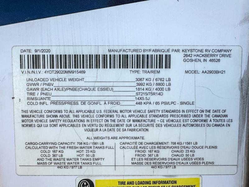 Used 2021 Dutchmen RV Astoria 2903BH Travel Trailer