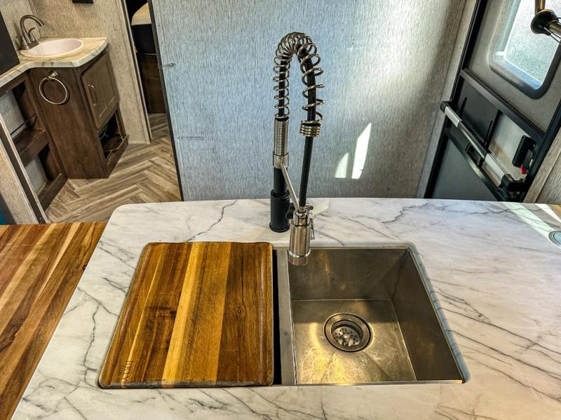 With any Astoria travel trailer, you'll get the Dutchmen construction advantage with features such as HyperDeck floor construction which includes linoleum flooring, vacuum bonded lamination, and a fully enclosed underbelly, plus a fiberglass cap with windshield. Some standard features that will impress you include an exterior spray port to keep the sand outside, arched interior ceiling for more standing space, dual 20 lb. propane tanks, dark-tinted safety glass windows, and stainless steel appliances so you can keep your bellies full with home cooked meals. Plus, an Astoria Premium package for even more convenience and comforts. Choose your favorite today!