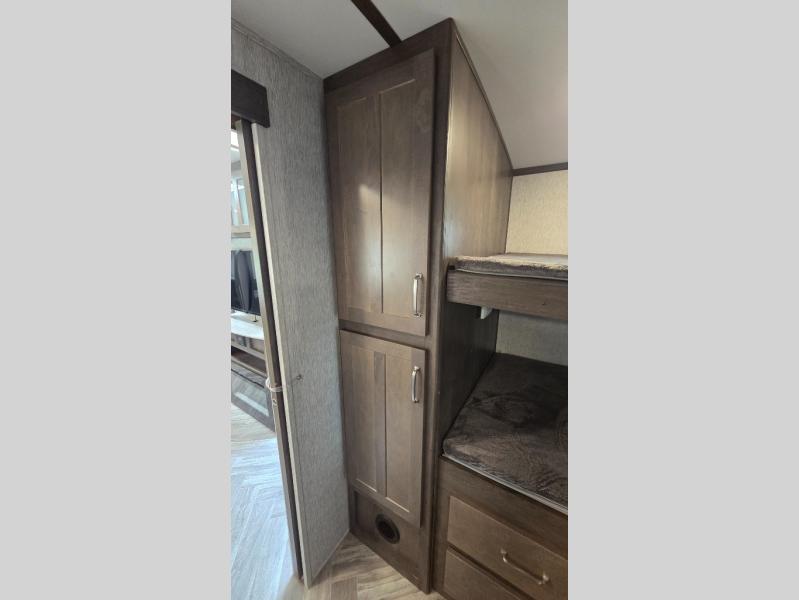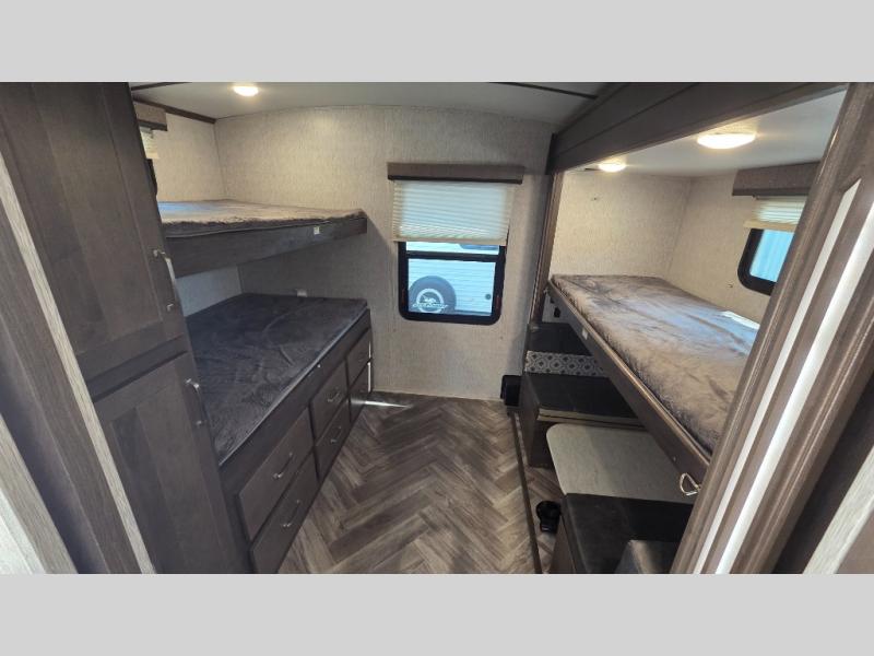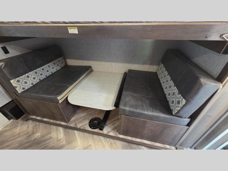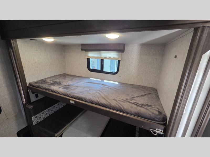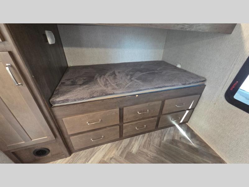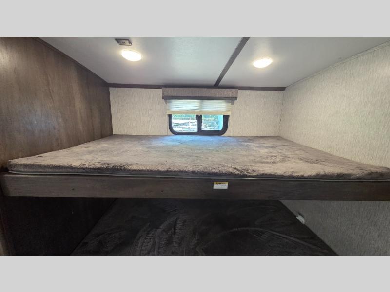 You'll have such a blast getting acquainted with your local state park in this Astoria travel trailer! Spend your day trekking through the woods and return home to a comfortable space within this trailer. Cozy up on the tri-fold sofa or U-shaped dinette while you watch a movie on the 40" LED TV and enjoy snacks from the walk-in pantry, or you can whip up a full meal on the three-burner range with 17" oven. At the end of the day, both you and the rest of your family can retire to your own locations with the private bedroom up front and the private bunkhouse in back.