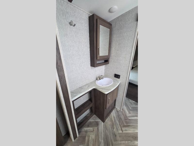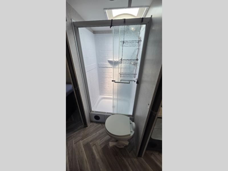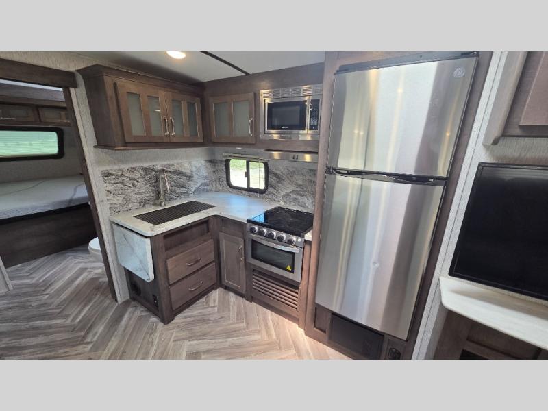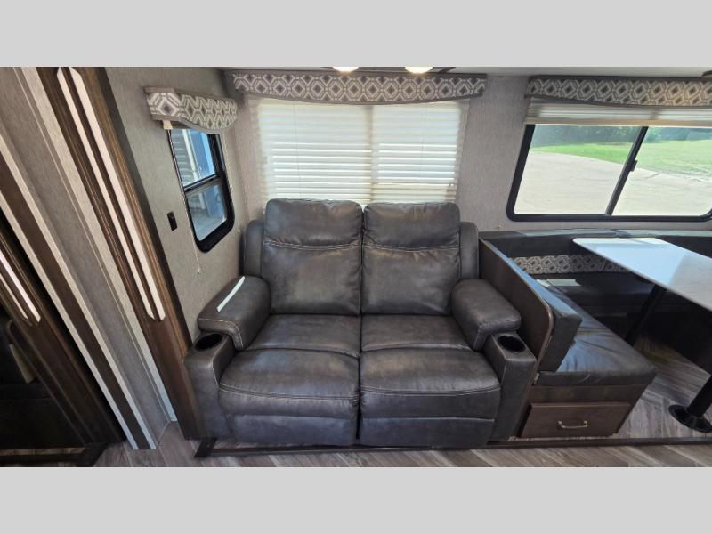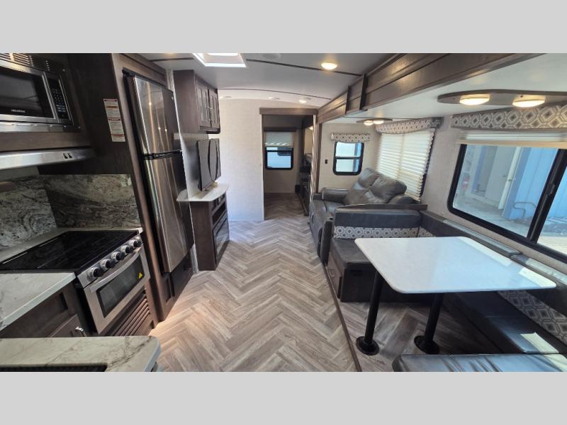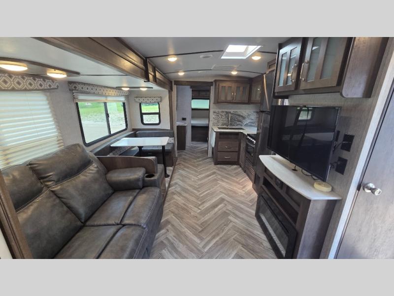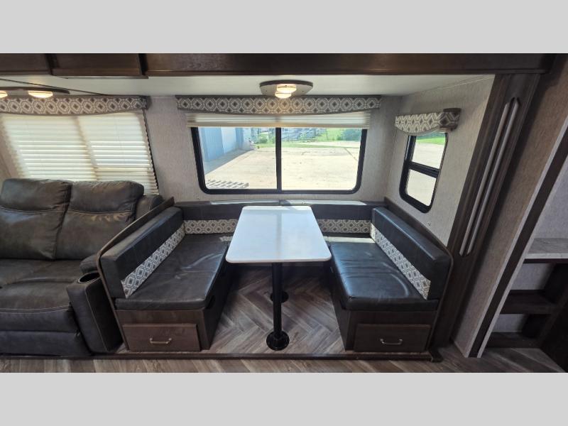 You'll have such a blast getting acquainted with your local state park in this Astoria travel trailer! Spend your day trekking through the woods and return home to a comfortable space within this trailer. Cozy up on the tri-fold sofa or U-shaped dinette while you watch a movie on the 40" LED TV and enjoy snacks from the walk-in pantry, or you can whip up a full meal on the three-burner range with 17" oven. At the end of the day, both you and the rest of your family can retire to your own locations with the private bedroom up front and the private bunkhouse in back.