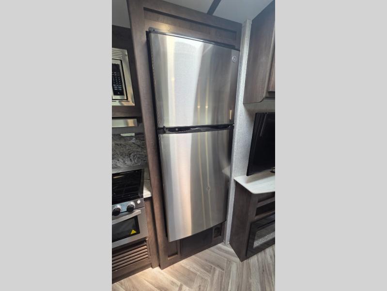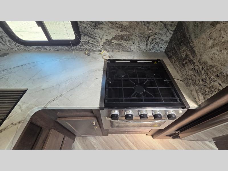 With any Astoria travel trailer, you'll get the Dutchmen construction advantage with features such as HyperDeck floor construction which includes linoleum flooring, vacuum bonded lamination, and a fully enclosed underbelly, plus a fiberglass cap with windshield. Some standard features that will impress you include an exterior spray port to keep the sand outside, arched interior ceiling for more standing space, dual 20 lb. propane tanks, dark-tinted safety glass windows, and stainless steel appliances so you can keep your bellies full with home cooked meals. Plus, an Astoria Premium package for even more convenience and comforts. Choose your favorite today!