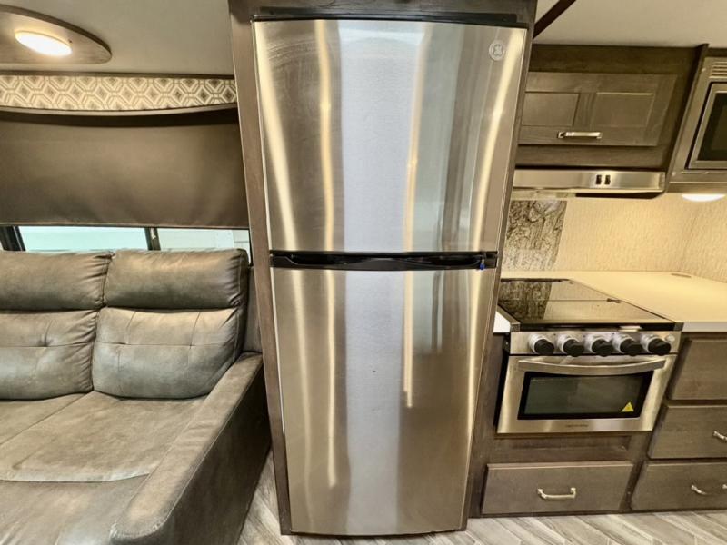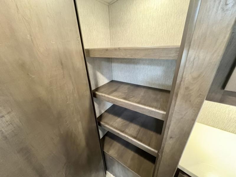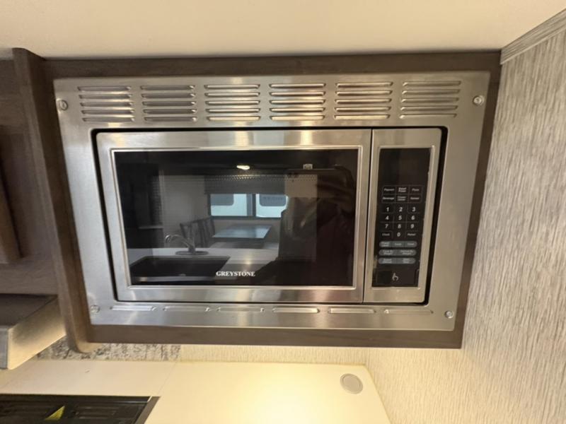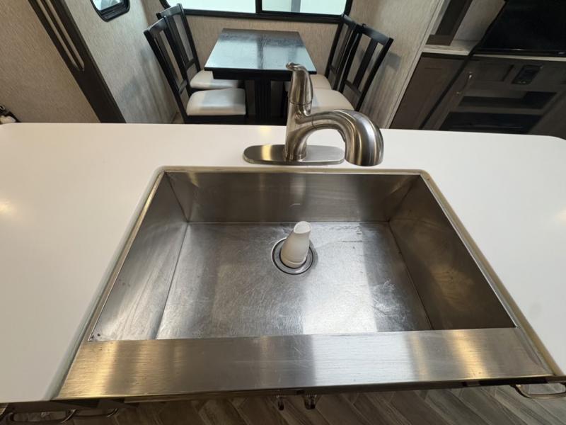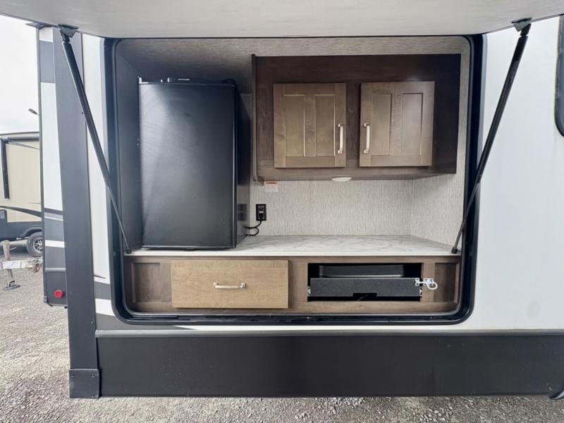 A fun time will be had by all in this Astoria travel trailer! You will be able to whip up dinner quickly and effortlessly with the three-burner range and 17" oven, and dishes will be easy to do in the large sink with a high-rise sprayer faucet at the island. Plus, your family can even sit down on the theater seating or tri-fold sofa to chat with you while you prep. You could also take your skills outside to the outdoor kitchen while you spend some time underneath the 12' power awning with LED lights.