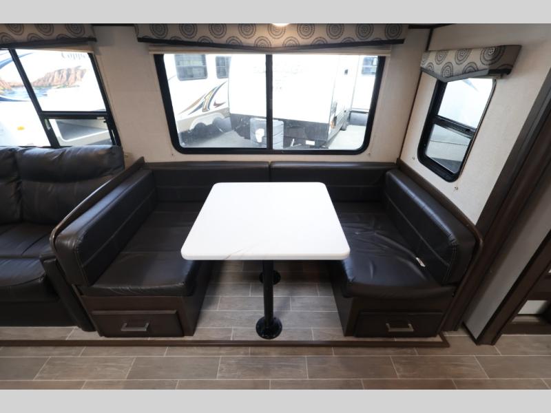 With any Dutchmen Atlas fifth wheel and travel trailer, you will have the Dutchmen construction advantage with a Hyperdeck floor structure which includes several protective layers from linoleum flooring, a steel powder coated main l-beam frame, and a full enclosed underbelly, plus vacuum bonded laminated walls, an insulated reinforced front cap, and fold down entry steps for stability that are easy to expand and store away. The travel trailers also offer a power tongue jack and power stabilizer jack. The interior provides motion sensor LED lighting in the kitchen, a 30" wide fireplace in the living area, and a porcelain toilet in the bathroom, plus many more standard features and mandatory options. Make your selection today!