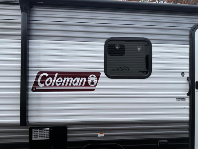 With this Coleman trailer, you will experience Dutchmen quality throughout, plus enjoy a lightweight travel trailer while towing to the campground or RV park. Some of the inside features include glass cabinet doors, a high rise faucet, and trash can storage. The 28" entrance door offers an entry handle to easily make your way up the solid entry step, and other exterior features include radial tires, silver spoke rims, Easy Lube axles and storage. Take this Coleman home today!