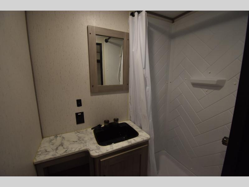 Are you an RV newbie or a seasoned professional? No matter what you are, you will find this Coleman Lantern LT travel trailer to be both accommodating and functional for any kind of excursion you are interested in taking. The walk-around queen bed in the front gives you a comfortable place to lay your head each night while your kids or guests sleep on the booth dinette or sofa, and you will be so grateful to have your very own bathroom so that you can avoid trudging down to the public facilities before you've even had your morning coffee. Plus, the shower has a skylight offering you more headroom and lighting when getting cleaned up.