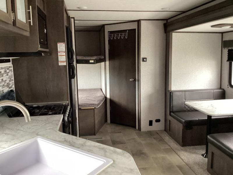 Where will you vacation next with this Coleman Lantern LT Series travel trailer? The choices are endless! With its double-size bunks, booth dinette, sofa with EZ storage, and queen-size bed, this trailer has an impressive capacity to sleep up to eight people while you are away, and the interior speakers will be a wonderful way to entertain your guests. You can even escape to the cool night air underneath the 14' power awning with LED light that will illuminate the dark sky while the kiddos sit around the campfire.