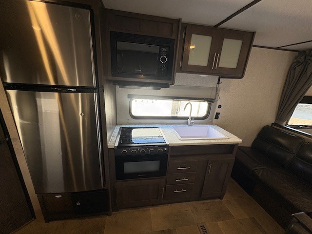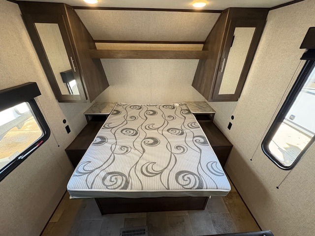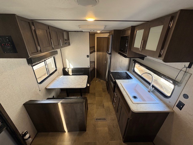Don't let memorable and adventurous getaways pass you by! Grab this Coleman Lantern LT Series travel trailer and set out on your next great expedition. The full bathroom with its skylight will come in handy for your morning routines, and the full kitchen will give you an opportunity to make warm meals for the group. You will be amazed by the amount of sleeping choices this trailer has, enough to sleep up to eight people comfortably. The bunks will be the kids favorite, and the walk-around queen bed will be a nice oasis at night, plus the furniture doubles as sleeping space.
