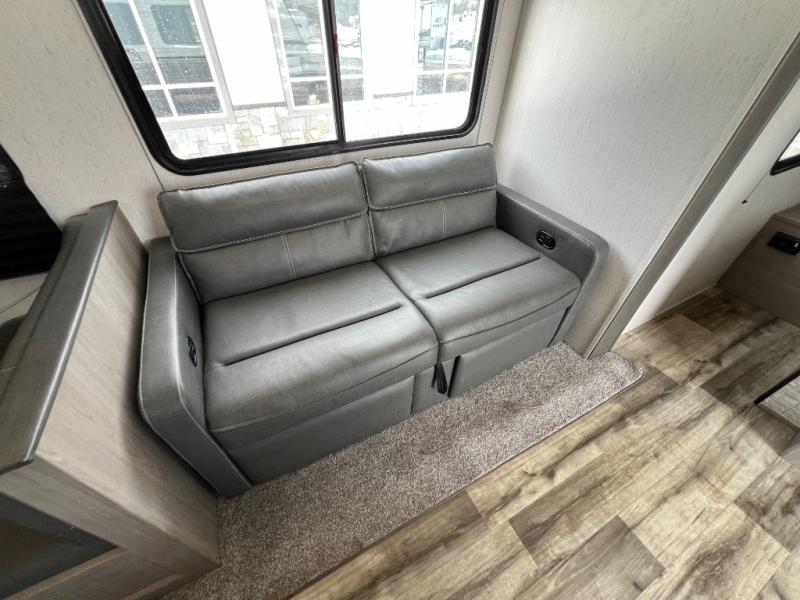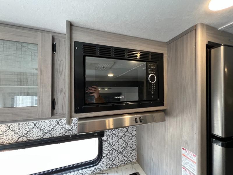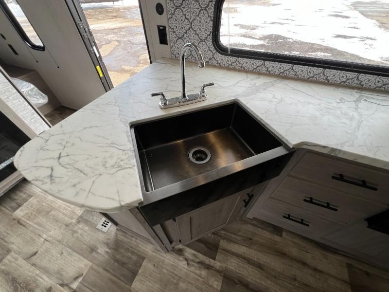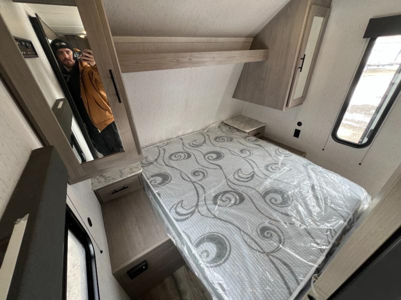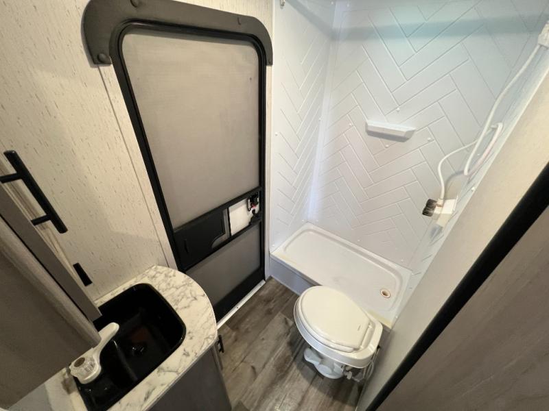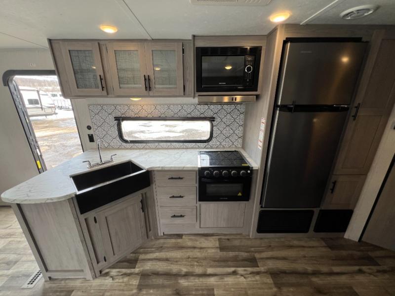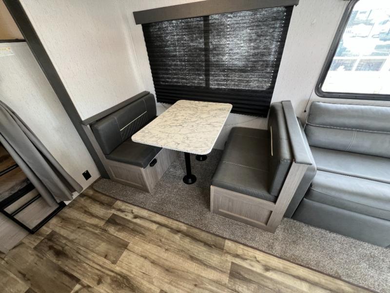 This Coleman Lantern Series travel trailer will provide you and your family with comfort and convenience while you enjoy the great outdoors. You might even meet other RV owners to camp with as well. From having your own private bedroom with wardrobe space and USB power outlet to your kids having double-size bunks, you will not be missing home at all. The cook can make meals while the others take turns getting ready in the full bathroom, and the second exterior entry door into the bathroom is a huge convenience for many reasons. Make this model yours today!