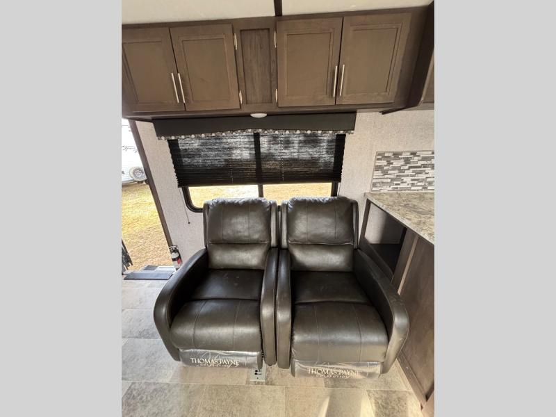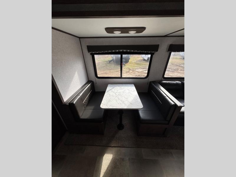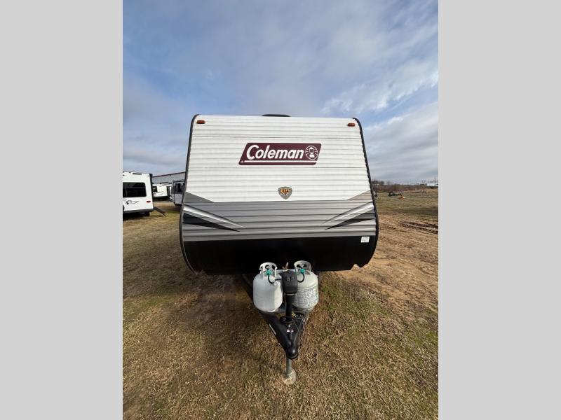 When it's time to get away, hitch up this Coleman Lantern Series travel trailer to your tow vehicle and hit the open road. You can start thinking about all the places you will explore after a good night's rest on the queen bed in your front private bedroom while the kiddos or grandkids sleep on the booth dinette or sofa in the main living area. In the morning you can drink your coffee while relaxing on one of the two swivel rockers after making breakfast for everyone. You will find storage in the EZ storage below the sofa, the overhead cabinets throughout, the dual wardrobes in the bedroom, and along the exterior so you don't have to leave anything behind.