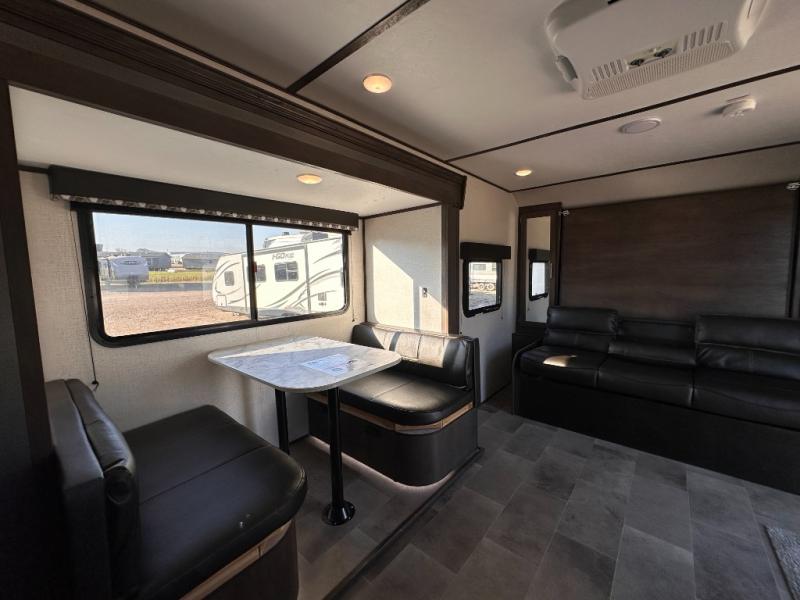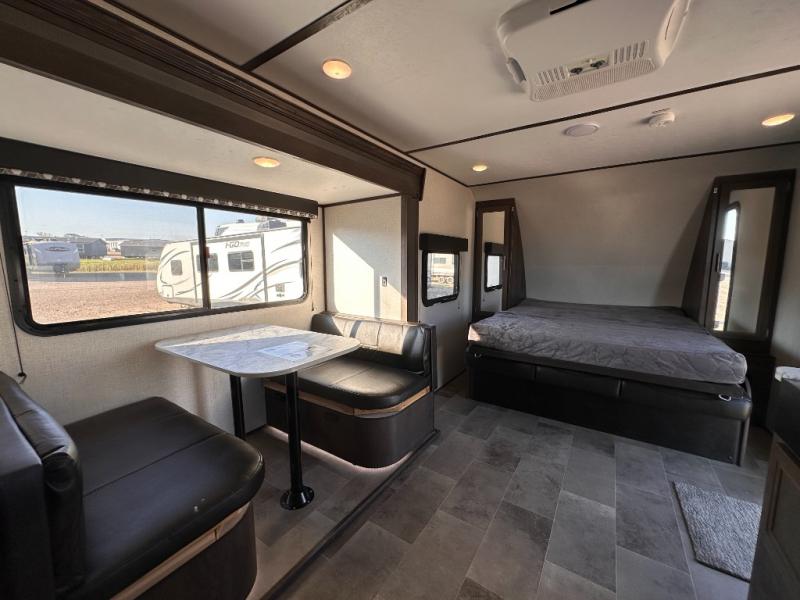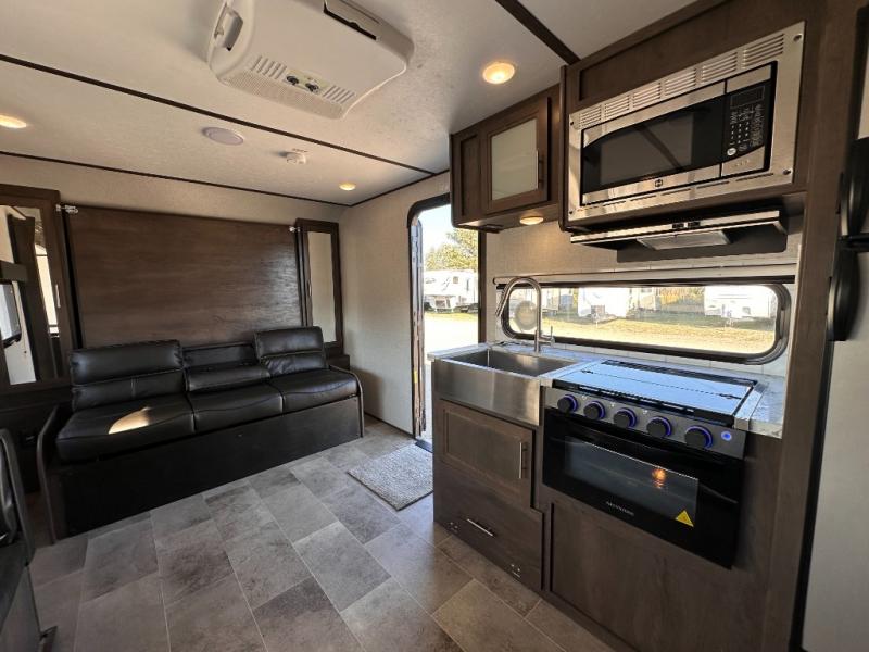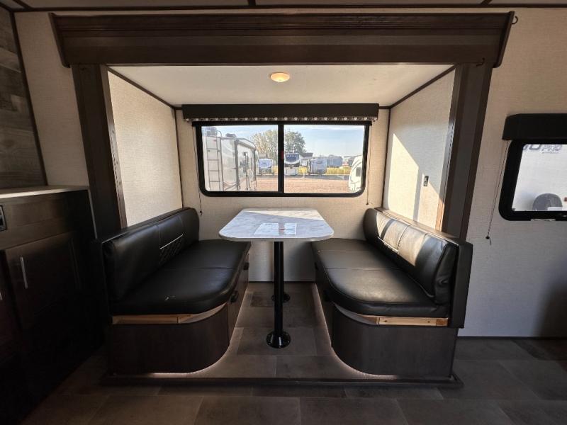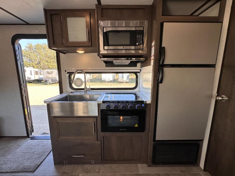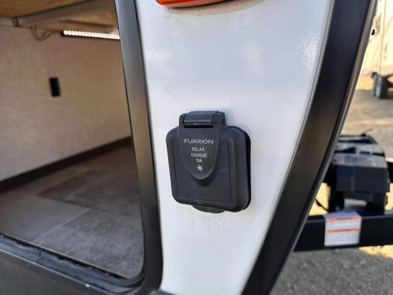 The compact size and light weight are what make this Coleman Light travel trailer so valuable! You will also enjoy how functional the interior is with its booth dinette that can serve as a dining or sleeping location and its Murphy bed that can move out of the way to reveal a sofa for afternoon lounging. There is some extra privacy with the full bathroom being located in the back, and the flush-mounted oven with three-burner range and glass top can be used when you want some pancakes for breakfast, grilled cheese for lunch, or stir fry for dinner. The exterior speakers are quite handy to have as they allow you to play some music for the group while you sit around the campfire.