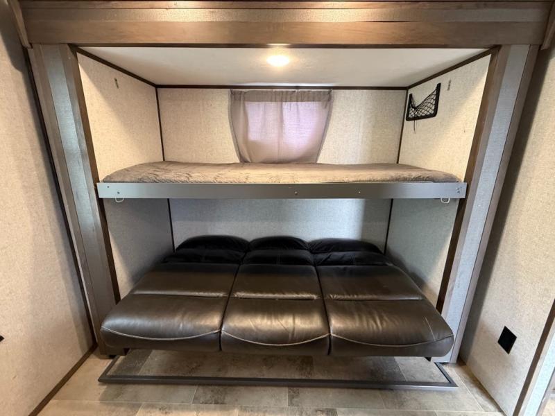 LIKE NEW 2021 DUTCHMEN COLEMAN LIGHT SERIES 3215BH, FREE DELIVERY & SETUP!! SUPER CLEAN. IS A RV LOADED WITH LUXURY!! 37 LONG. 2 PRIVATE BEDROOMS, 2 XL SLIDES. COLD A/C. QUEEN MASTER SUITE. PRIVATE REAR 3 BUNKS. DINETTE & A SLEEPER SOFA. FRONT PRIVATE BEDROOM. LARGE LIVING AREA WITH THEATER SEATING & TRIFOLD SLEEPER SOFA. ELECTRIC FIREPLACE & BIG FLAT SCREEN TV. BEAUTIFUL KITCHEN with residential refrigerator, STAINLESS STEEL APPLIANCES, and LOTS OF CABINET STORAGE. 4 SEASONS PACKAGE WITH UPGRADED INSULATION. ALL FIBERGLASS DESIGNED FOR YEAR-ROUND COMFORT IN HOT OR COLD CLIMATES. COLD A/C UNITS. 50AMP POWER. OUTDOOR STORAGE. OUTDOOR KITCHEN, SOLID STEP ENTRY. DUAL AWNINGS WITH LED LIGHTS. LUXURY FEEL THROUGHOUT!!