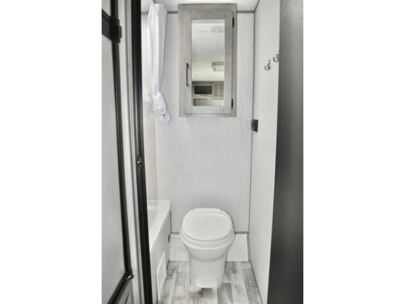 If you have been dreaming about exploring state parks and viewing majestic mountains, but you wish you could take the comforts of home with you, then you need this Kodiak Cub travel trailer. You will enjoy having enough sleeping space for five people, and you will certainly appreciate having your own private toilet and shower room so that you don't have to search around for a clean facility while away from home. The queen bed will provide plenty of comfort and relaxation each night, and the bunk beds will be an exciting place for the kids to drift off to sleep. The Pack-n-Play door is a handy addition to this trailer, and it allows you to pack your bikes or larger camping essentials more easily.