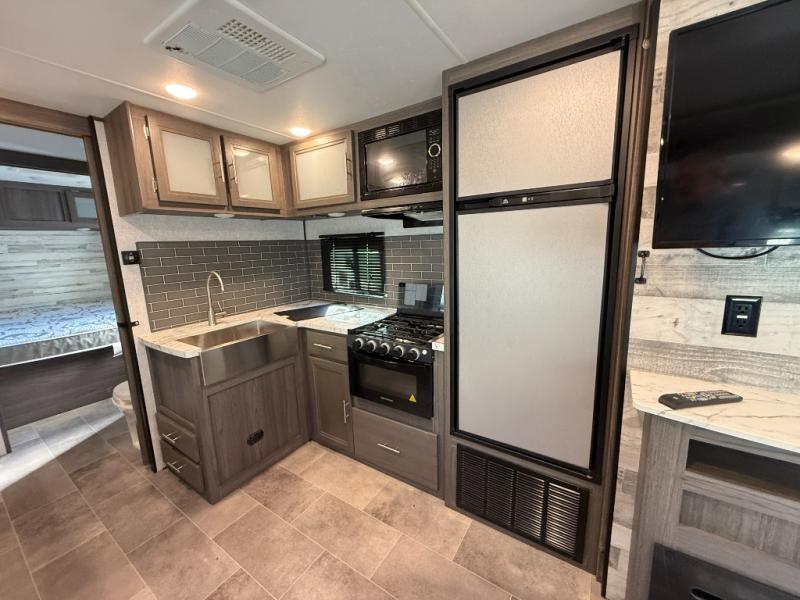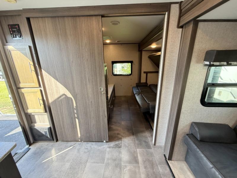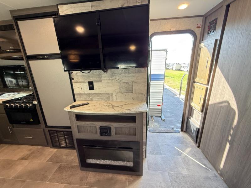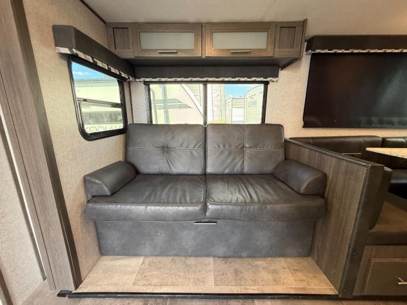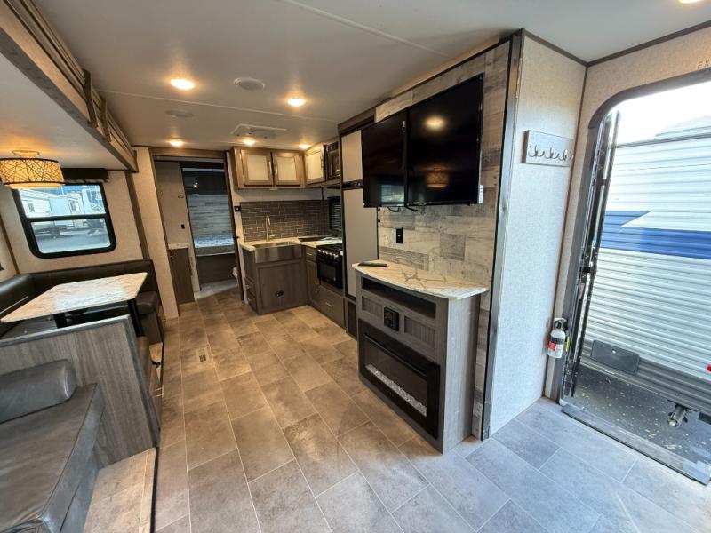 Are you looking for a travel trailer with a private bunkhouse and dual entry for easy access to both ends of the trailer? This Kodiak Ultra-Lite provides those desired features plus much more! You can cook for the whole family and your camping friends with full kitchen amenities inside including a hidden walk-in pantry with shelves to store all your dry goods and such. The chef can even cook on the outdoor kitchen while enjoying the scenery. If it begins to rain, everyone can step inside to play games at the U-shaped dinette and stay warm by the fireplace. The kids will probably retreat to their own bunkhouse, and the convenient walk-through bathroom gives everyone easy access to stay clean. Join the fun today!